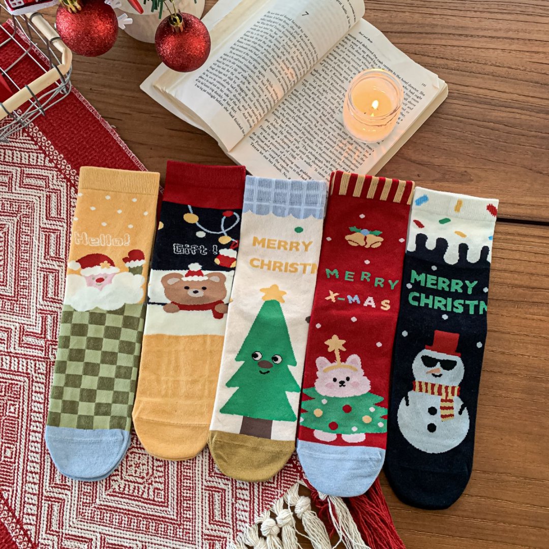 25款圣诞袜卡通棉袜女士袜子抗菌秋冬中筒袜保暖秋季可爱圣诞女袜