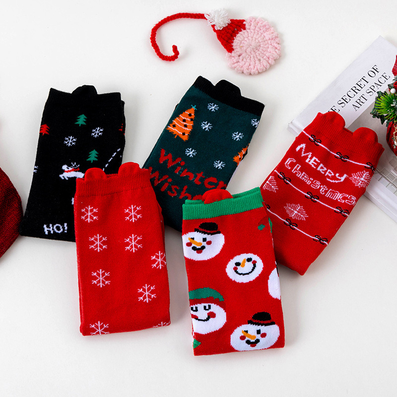 綿の女性のかわいい漫画のクリスマスソックス面白いハロウィンミッドカーフソックス立体耳新年ソックス大きな赤いソックス