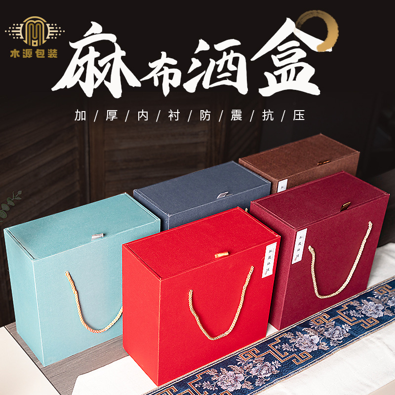 回纹布锦盒单瓶收纳盒空盒红酒白酒礼品包装盒高档送礼手提酒盒