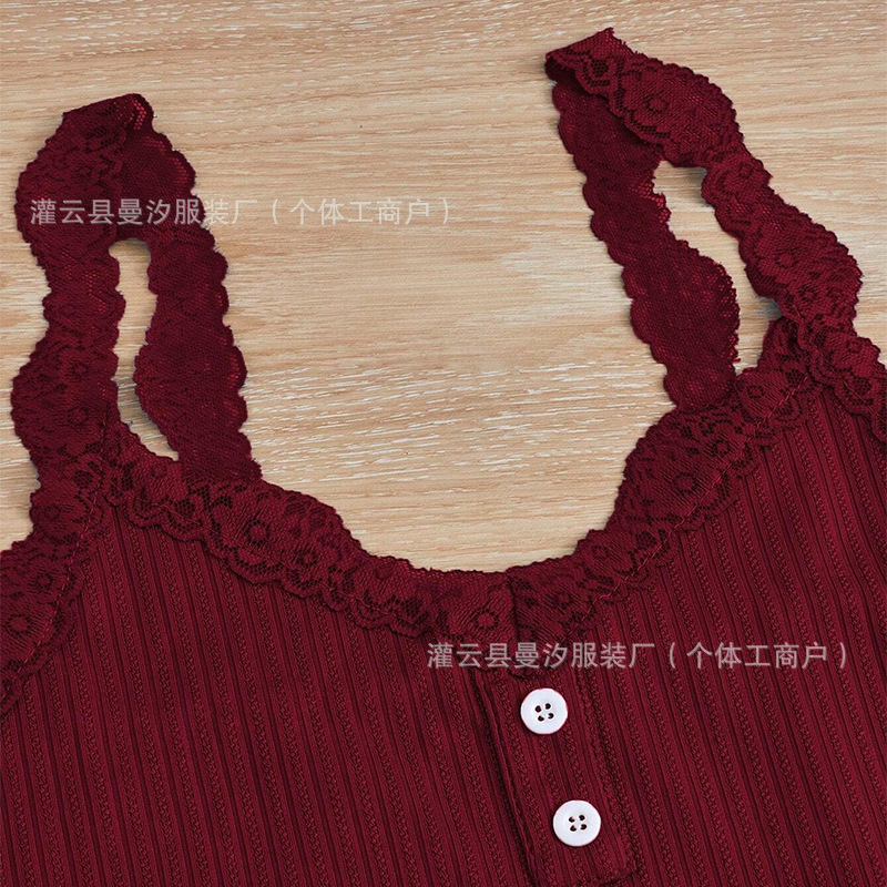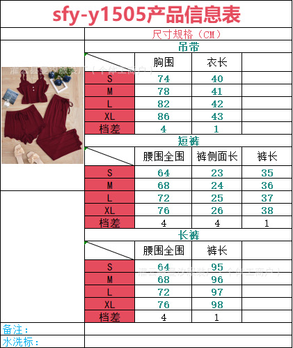 跨境热销欧美高弹力蕾丝花边吊带短裤长裤睡衣三件套女家居服批发
