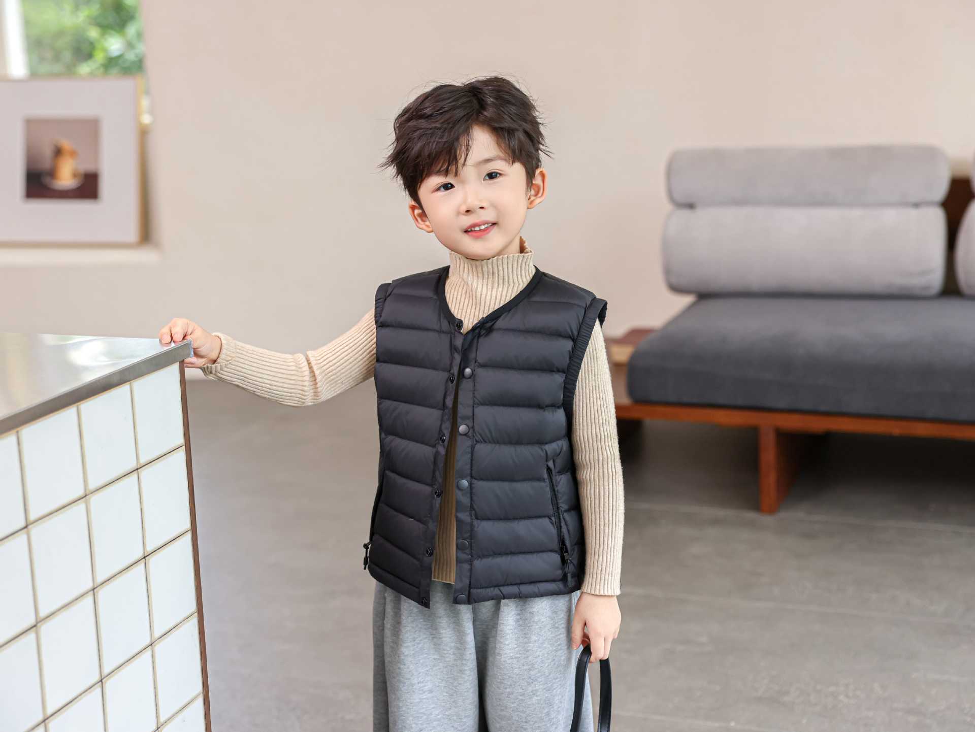 平湖ダウンジャケット卸売 2025 子供ダウンベストベスト 90 ホワイトダックダウン男の子と女の子ベストドロップシッピング