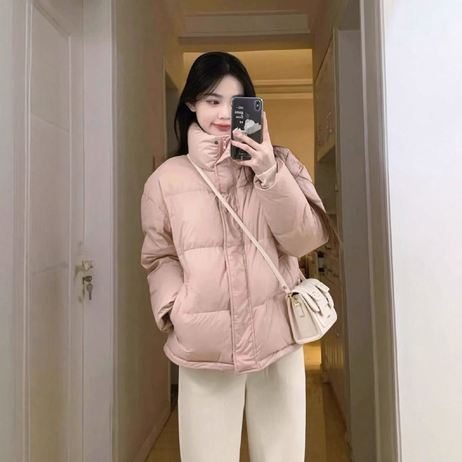 2025年冬新作、厚手ダウンジャケット、男女兼用、フード付きショート丈、カップル向け、卸売
