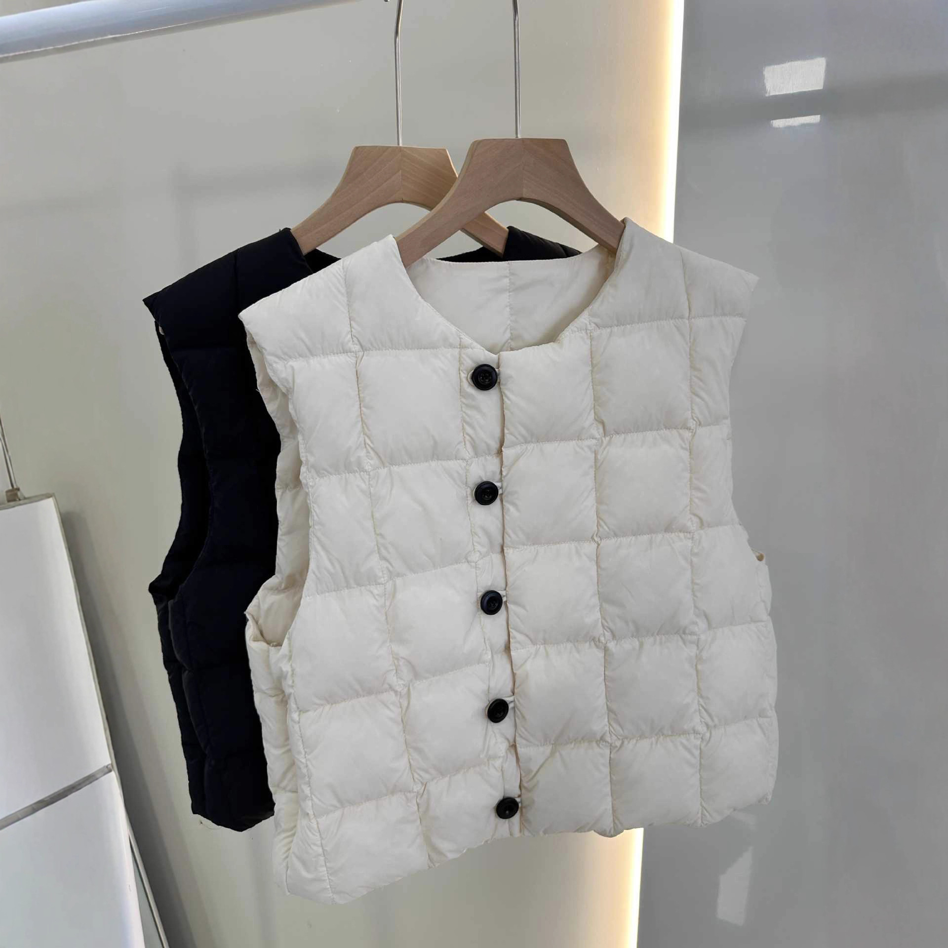 韩系气质方块羽绒服女90绒秋冬新款圆领坎肩外穿背心羽绒马甲