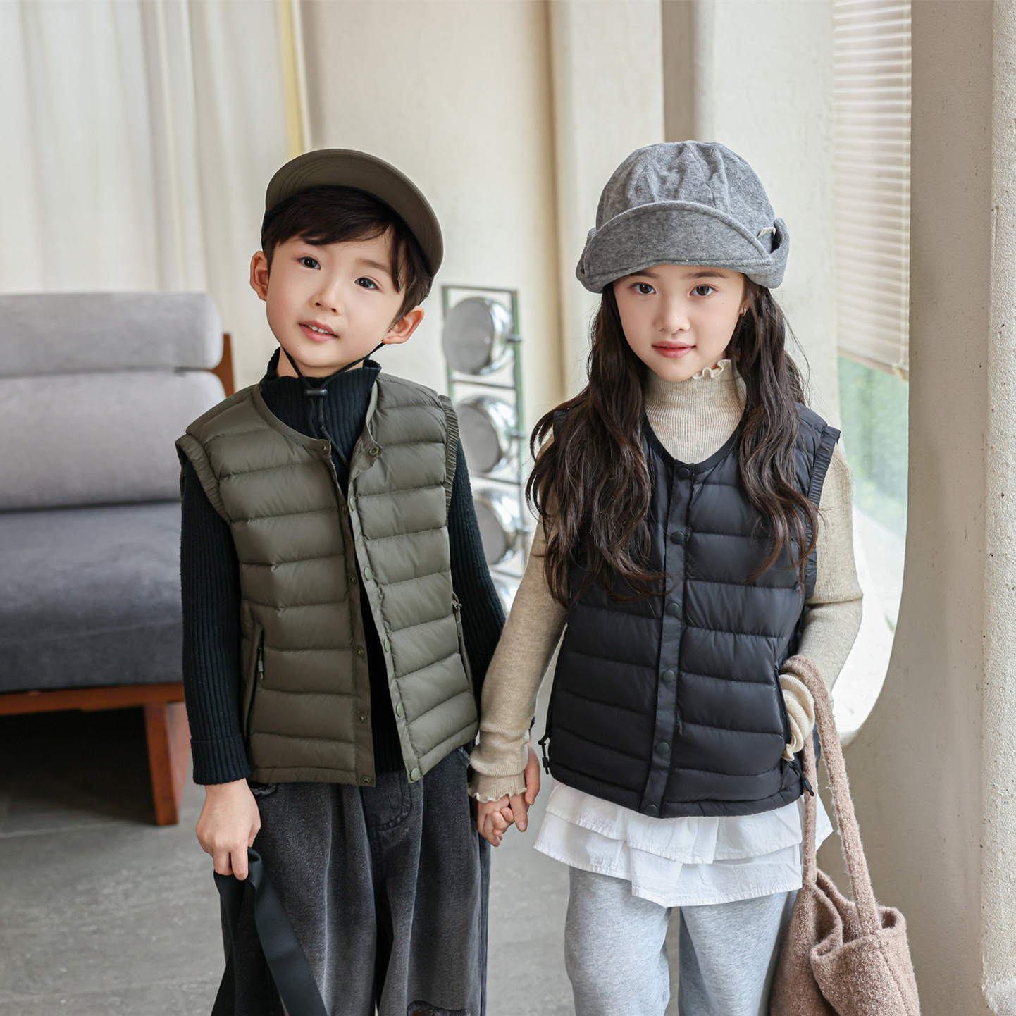 平湖羽绒服儿童羽绒马甲秋冬新款男女童立领背心90白鸭绒韩版坎肩