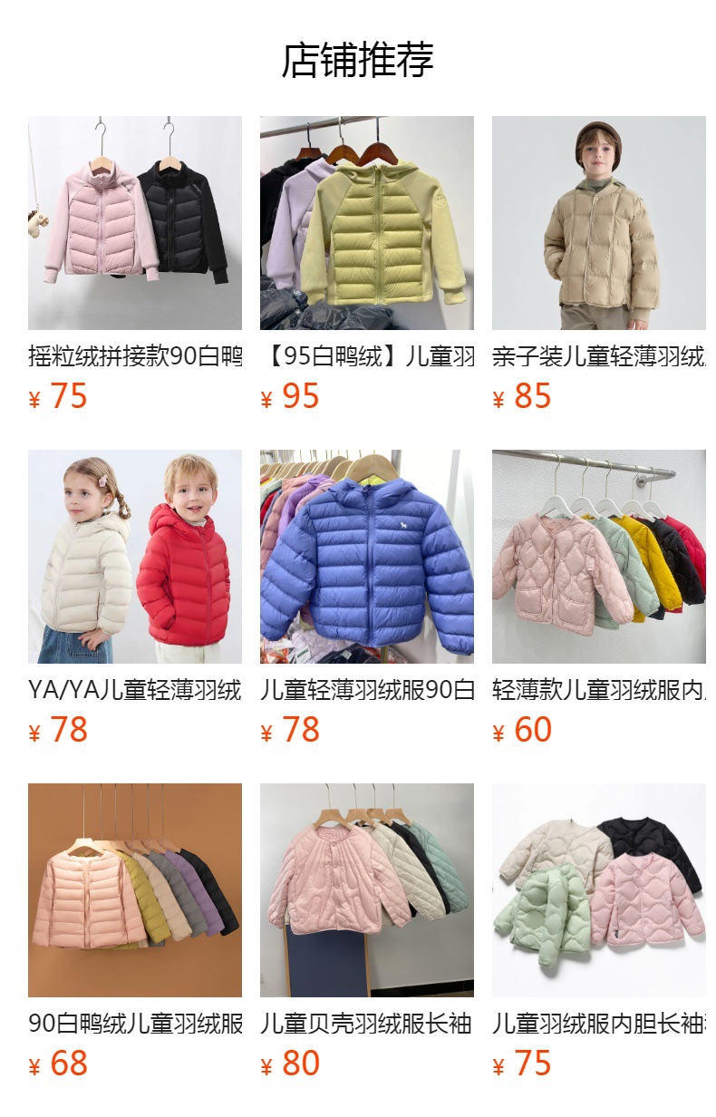 产品类别 童羽绒服/羽绒内胆