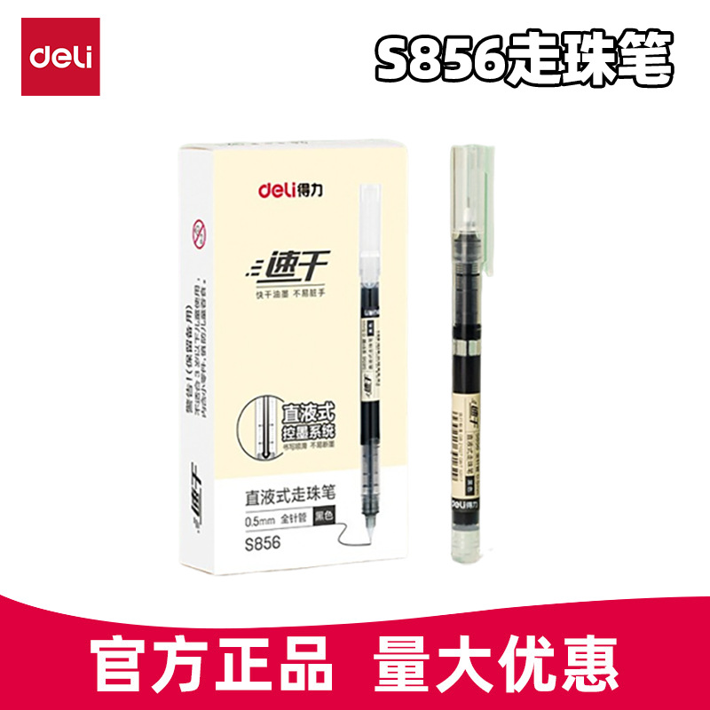 得力中性笔刷题走珠笔S856黑色直液式0.5速干笔水笔考试签字笔
