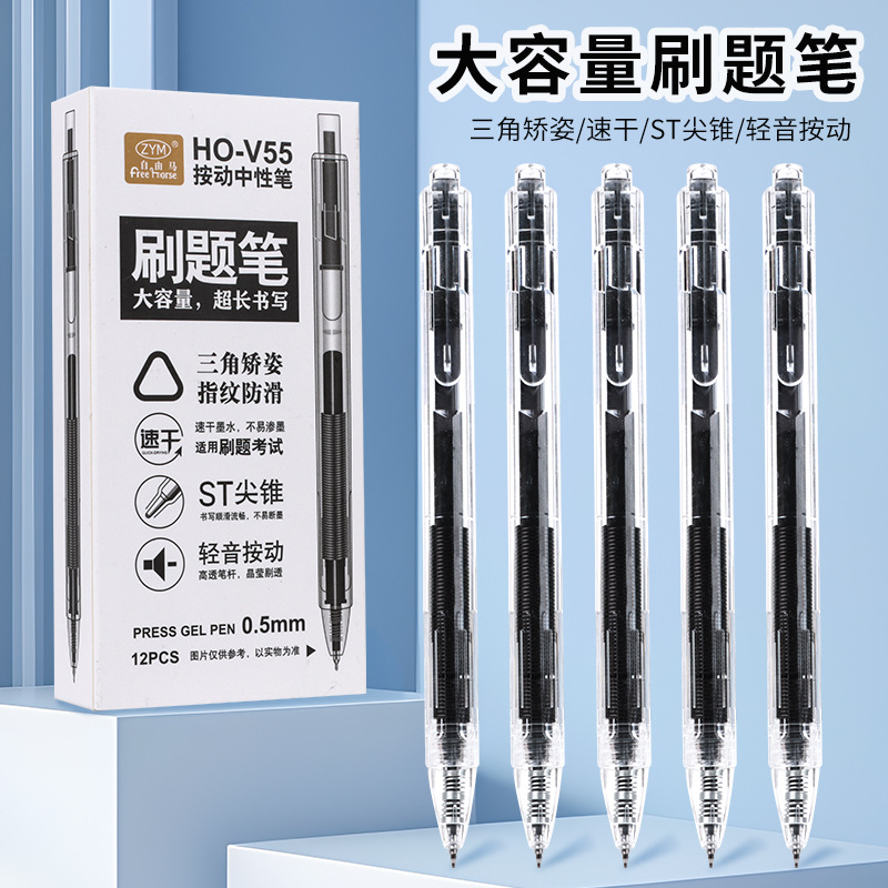 自由馬ST尖錐ペン頭0.5mm大容量ブラシ問題ペン速乾中性水筆三角矯正ペン