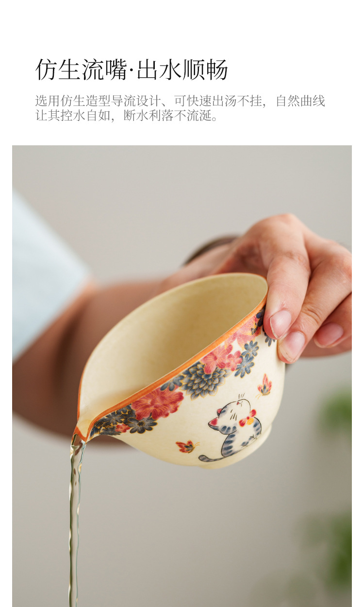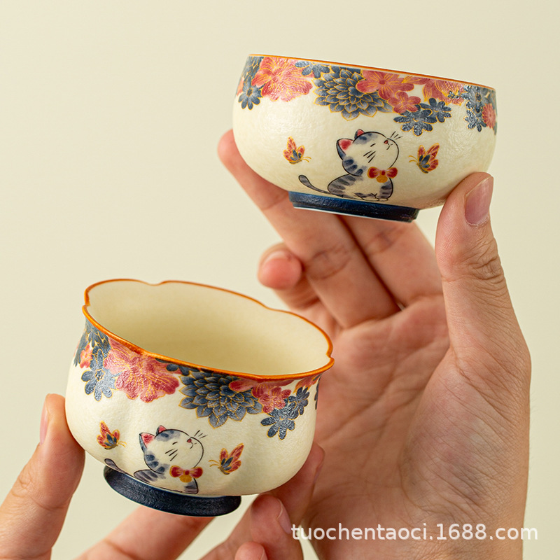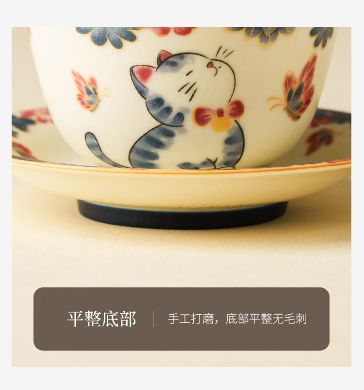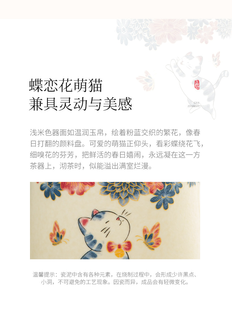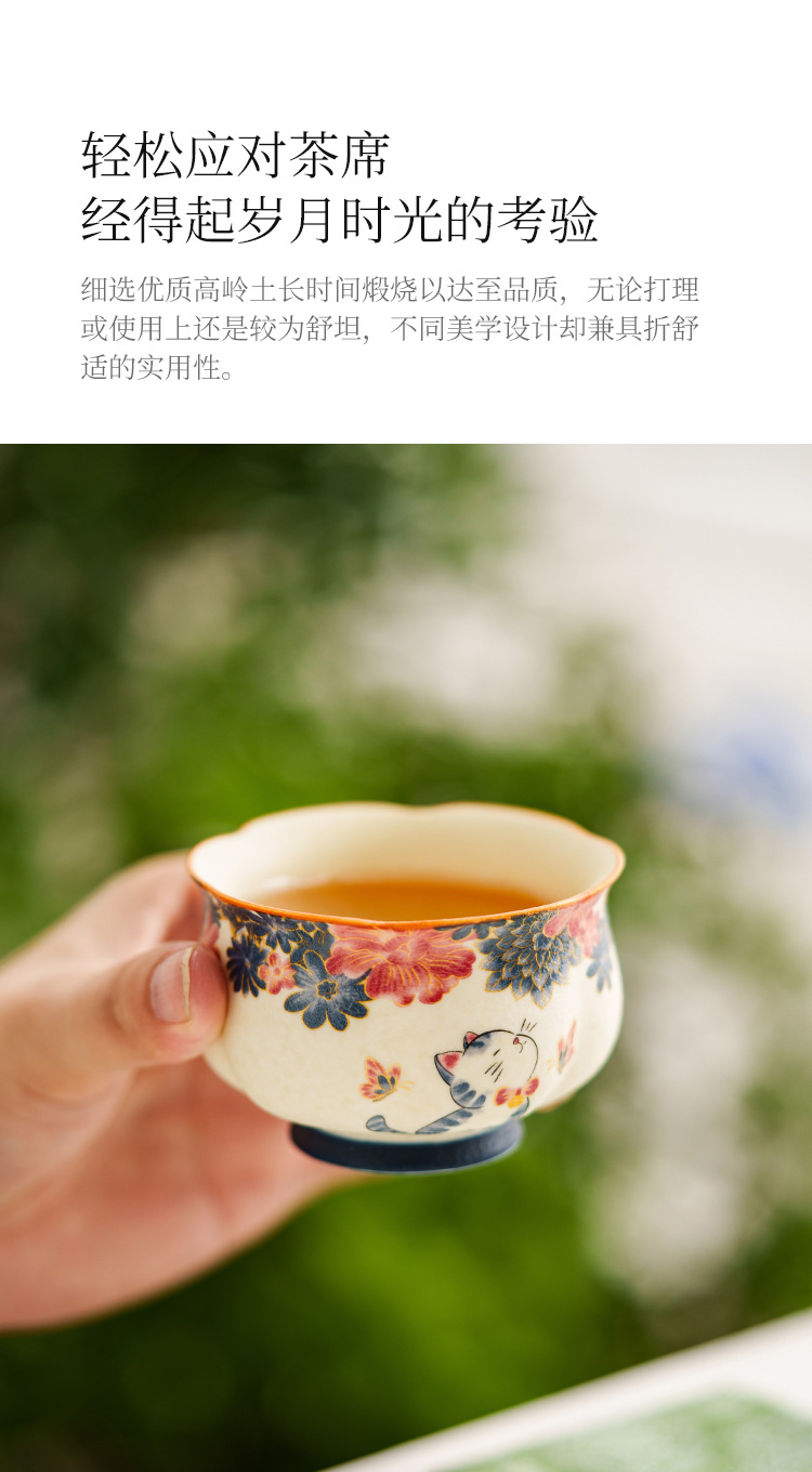 个人陶瓷茶壶萌猫品茗杯岩矿白专用主人杯茶杯功夫茶具套装蝶恋花