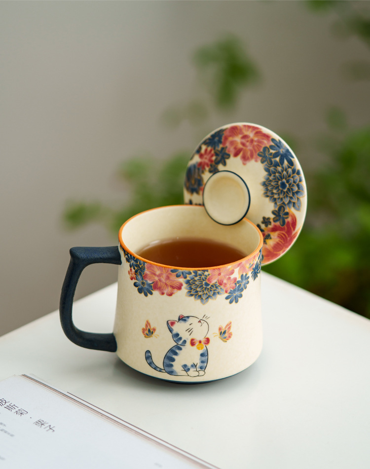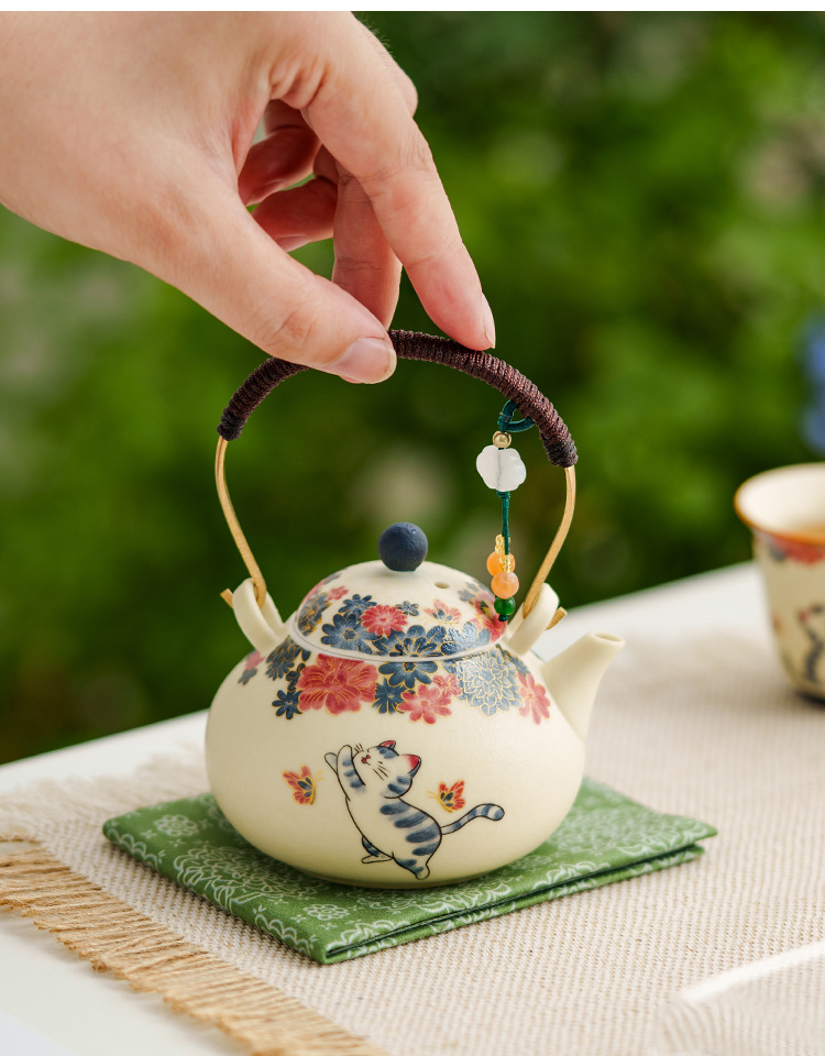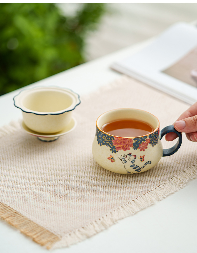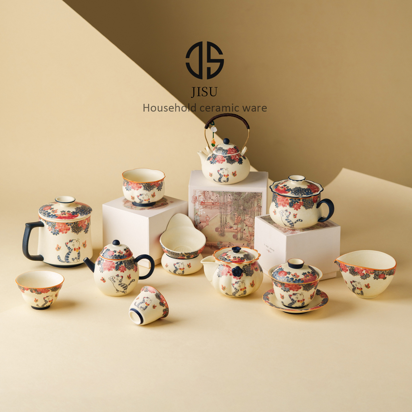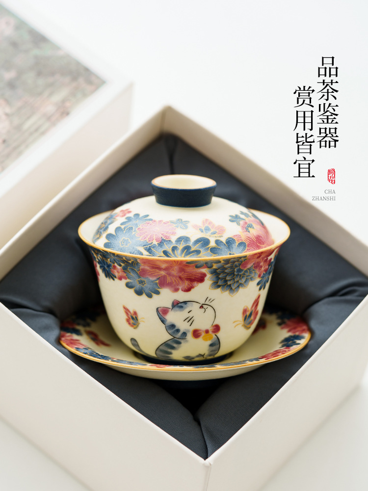 个人陶瓷茶壶萌猫品茗杯岩矿白专用主人杯茶杯功夫茶具套装蝶恋花