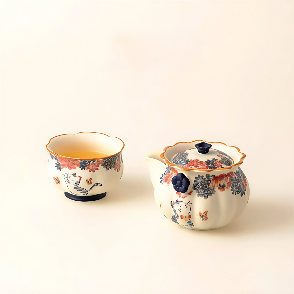 岩矿白陶瓷茶壶茶杯蝶恋花萌猫品茗杯主人杯个人专用功夫茶具套装