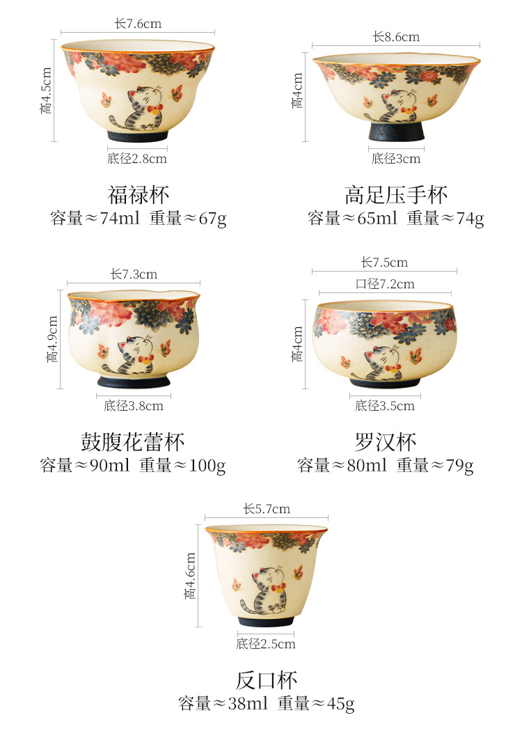 岩矿白陶瓷功夫茶杯蝶恋花萌猫主人杯高档个人专用茶具品茗杯茶盏