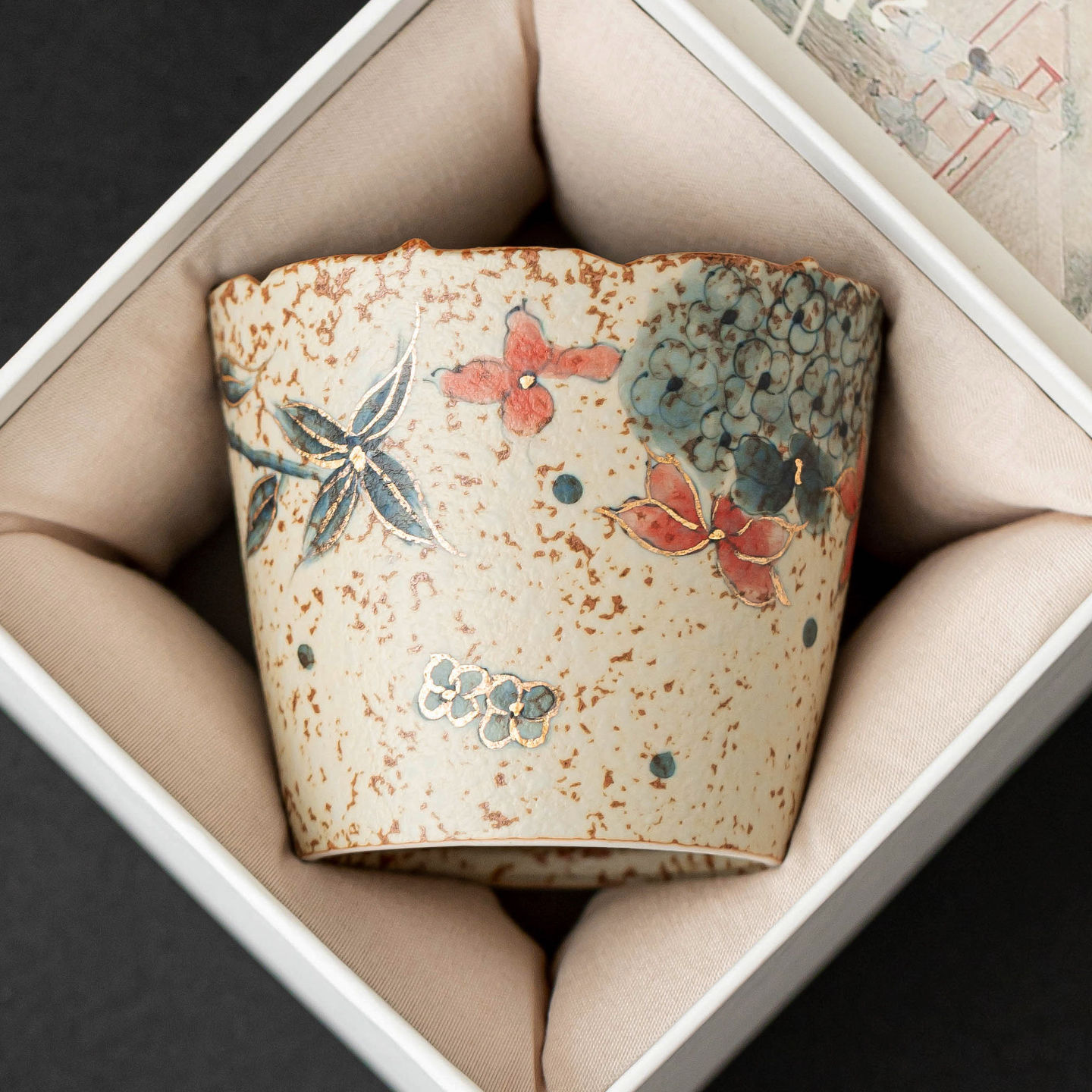 工場青と白のフリントレッドマスターカップ手描きアジサイティーカップセラミックフラワーマウスティーカップ個人用