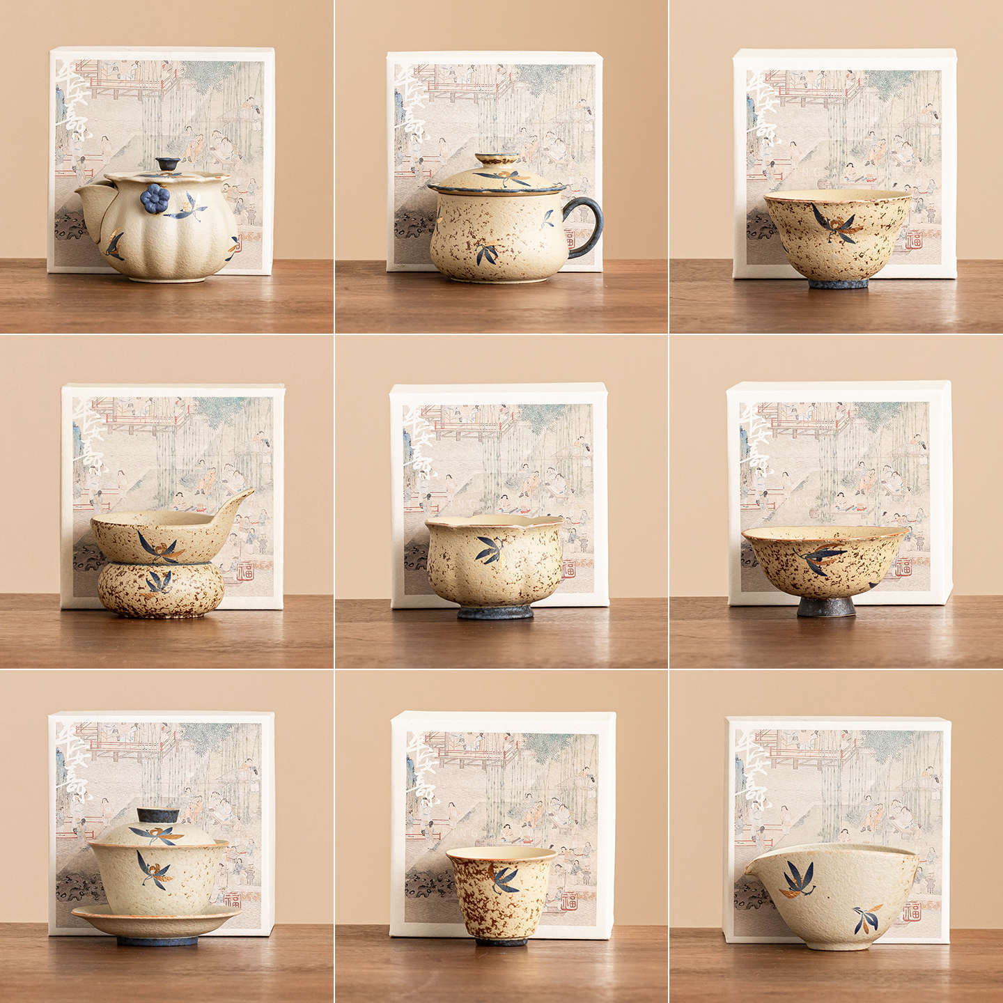 工場米黄汝窯茶器セット2024新型シンプル工夫茶泡茶ティーポット蓋杯カップ茶筒