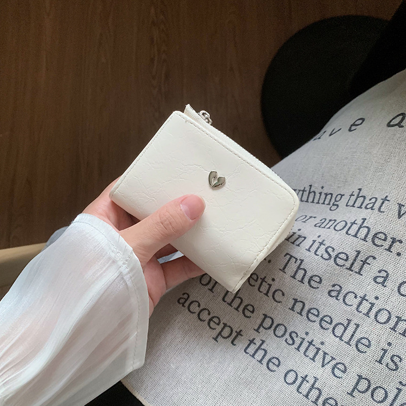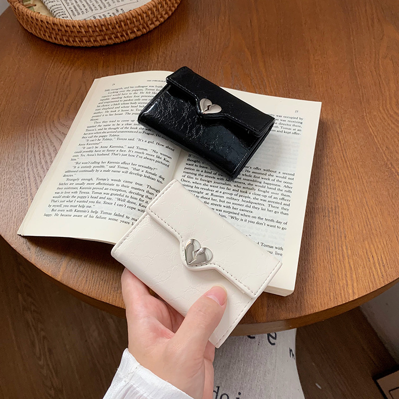 耐看!小爱心五金朋克风韩网热卖INS爆款三折大容量裂纹女士钱包