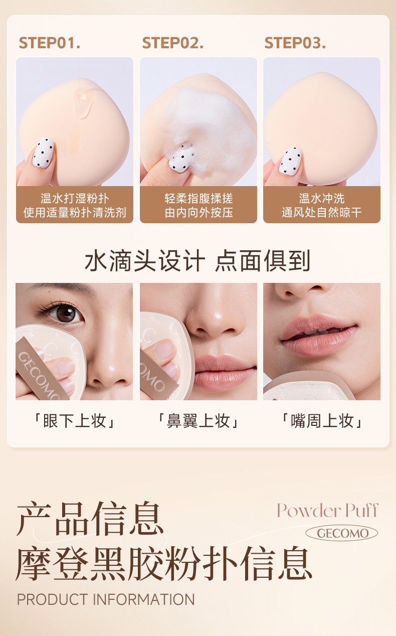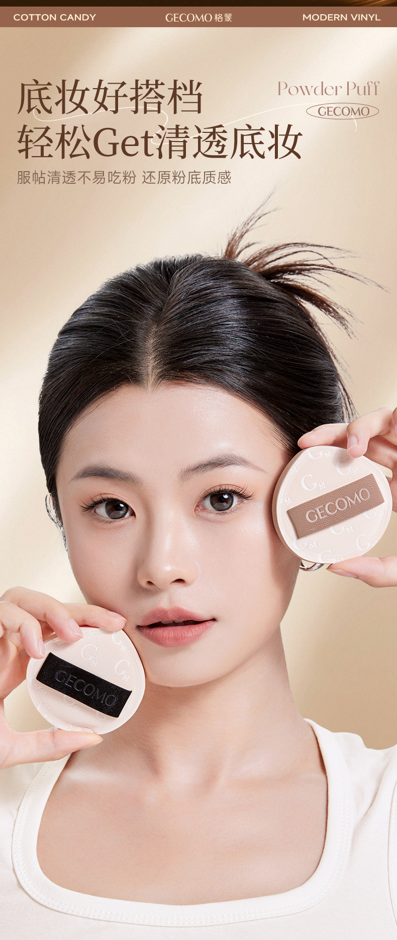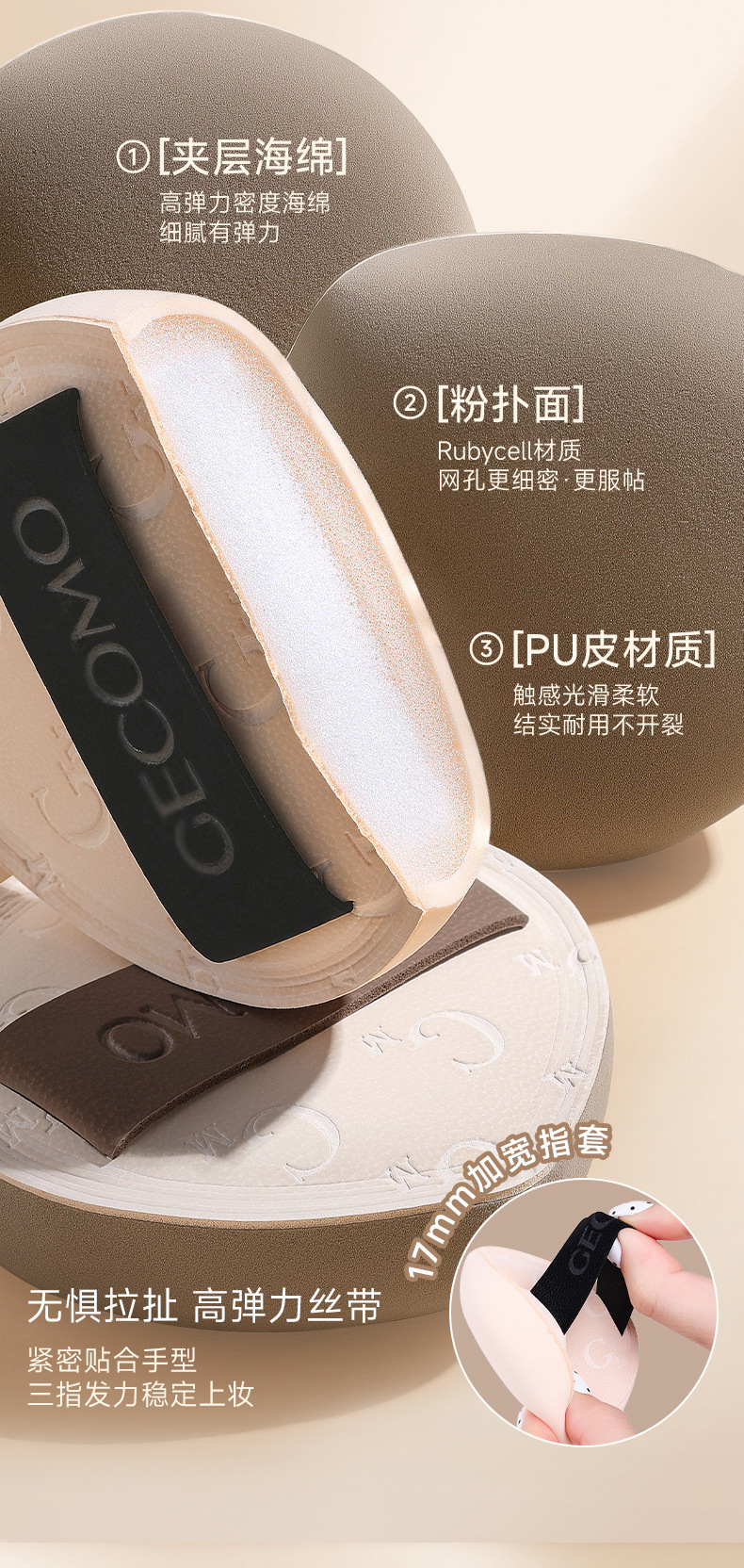 GECOMO摩登黑胶粉扑厚软遮瑕清透不吃粉粉底液专用棉花糖气垫粉扑