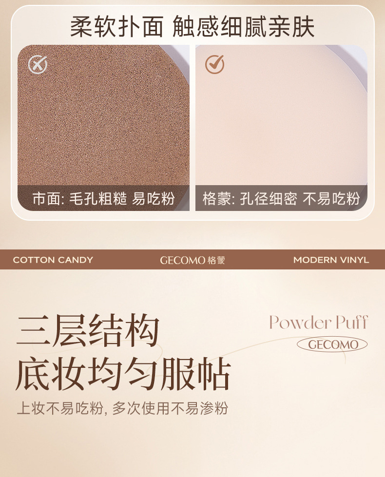 GECOMO奶皮粉扑厚实细腻柔软持妆清透无暇底妆棉花糖气垫美妆工具