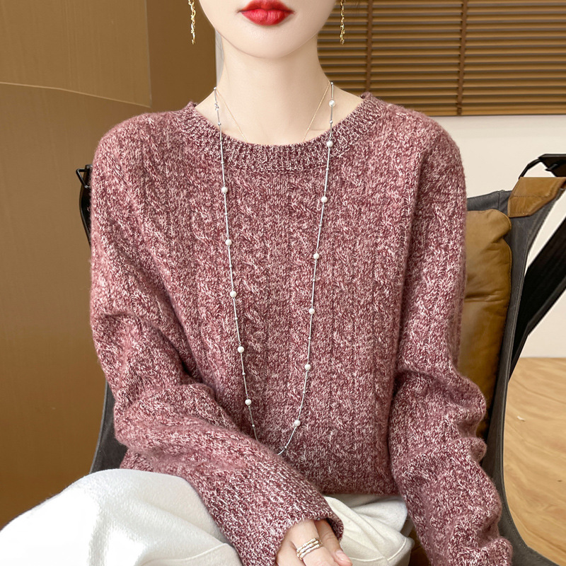100%ウール 2025秋冬新作 レディース ラウンドネック プルオーバー ショート丈 ツイストニット セーター