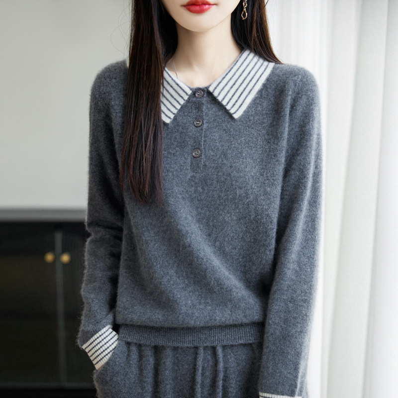 2025秋冬新款翻领针织羊毛衫女宽松显瘦毛衣女士女装长袖外套上衣