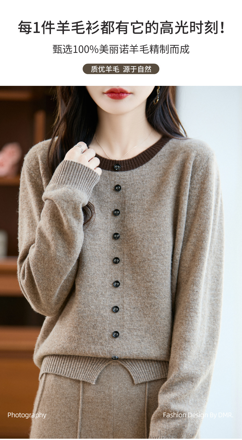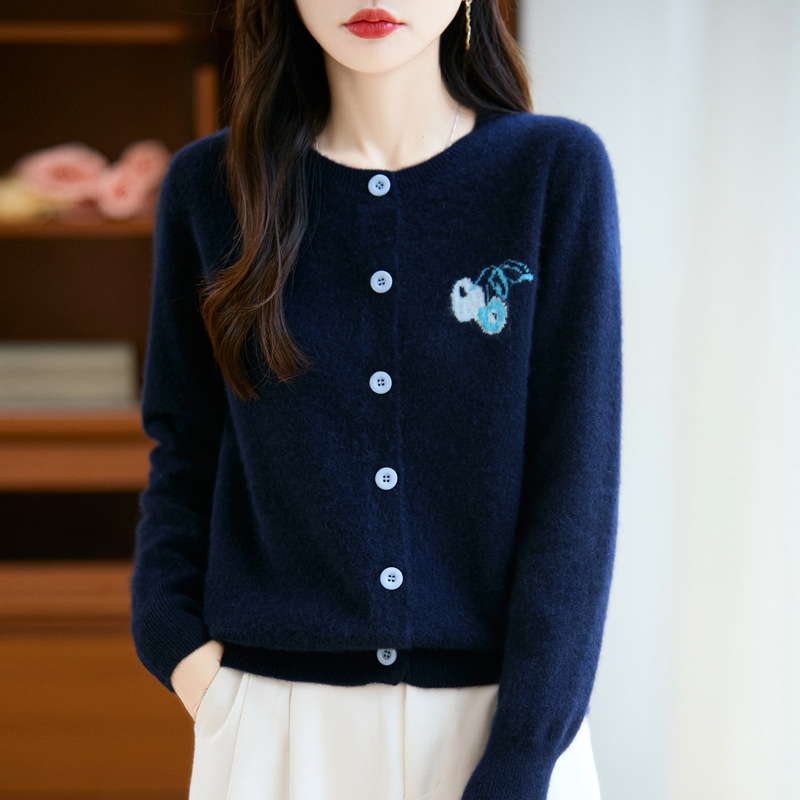 新款100纯羊毛衫女圆领开衫外穿上衣针织打底衫秋冬百搭女装外套