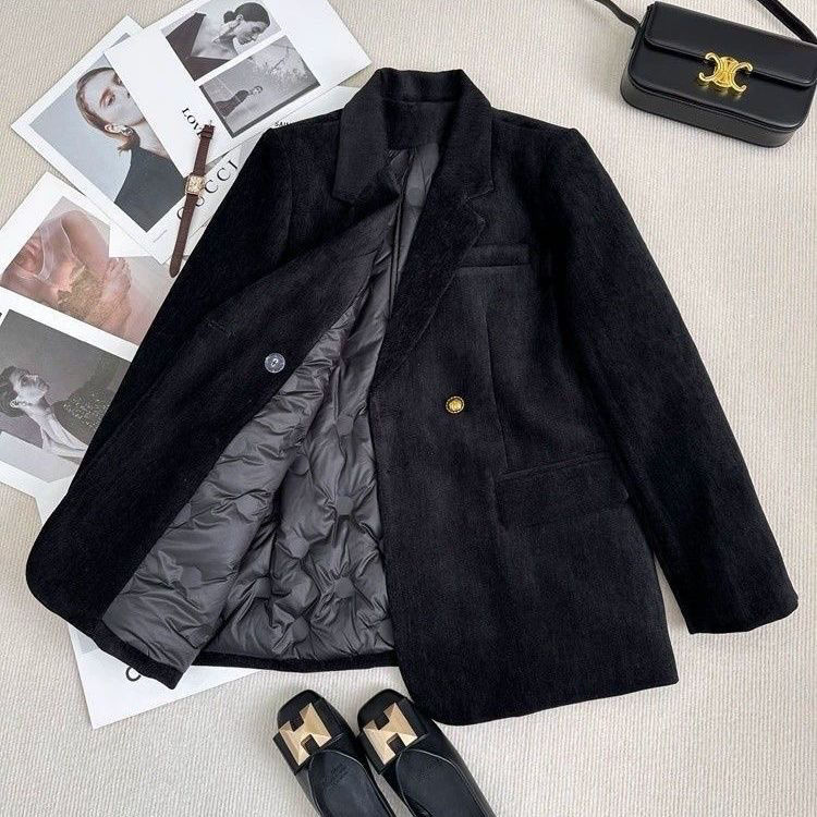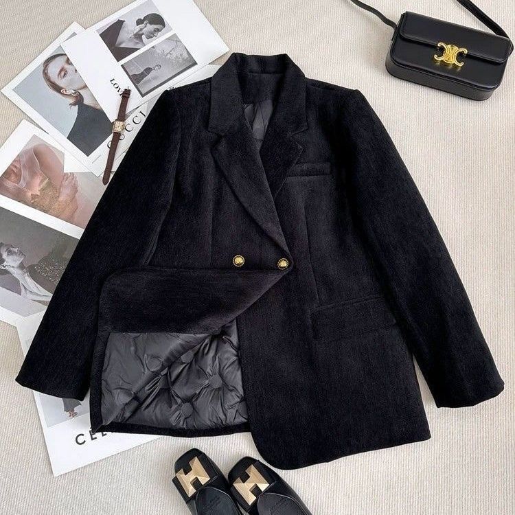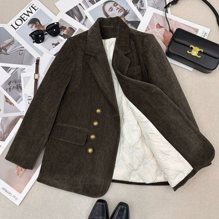 2025新款秋冬西装休闲通勤外套简约复古冬季加棉加绒保暖外套