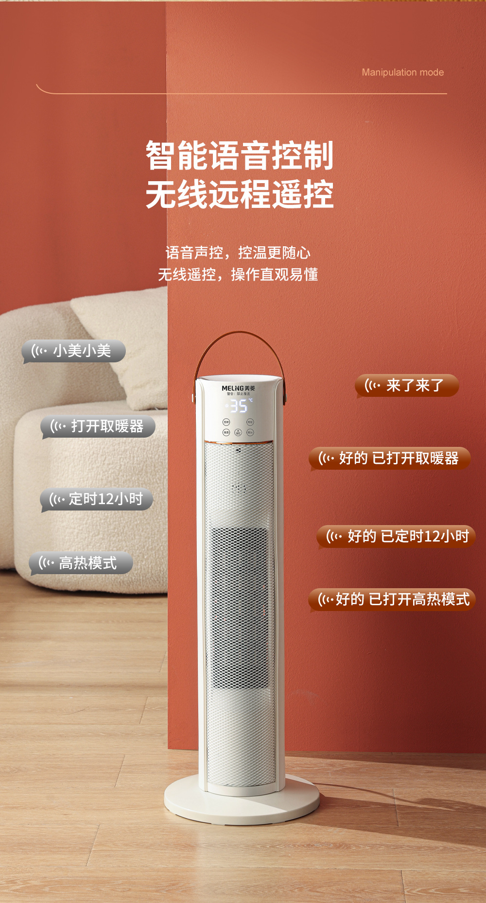 美菱音声知能ヒーター家庭用縦型ヒーター浴室グラフェン熱ファン省エネ速熱電気炉