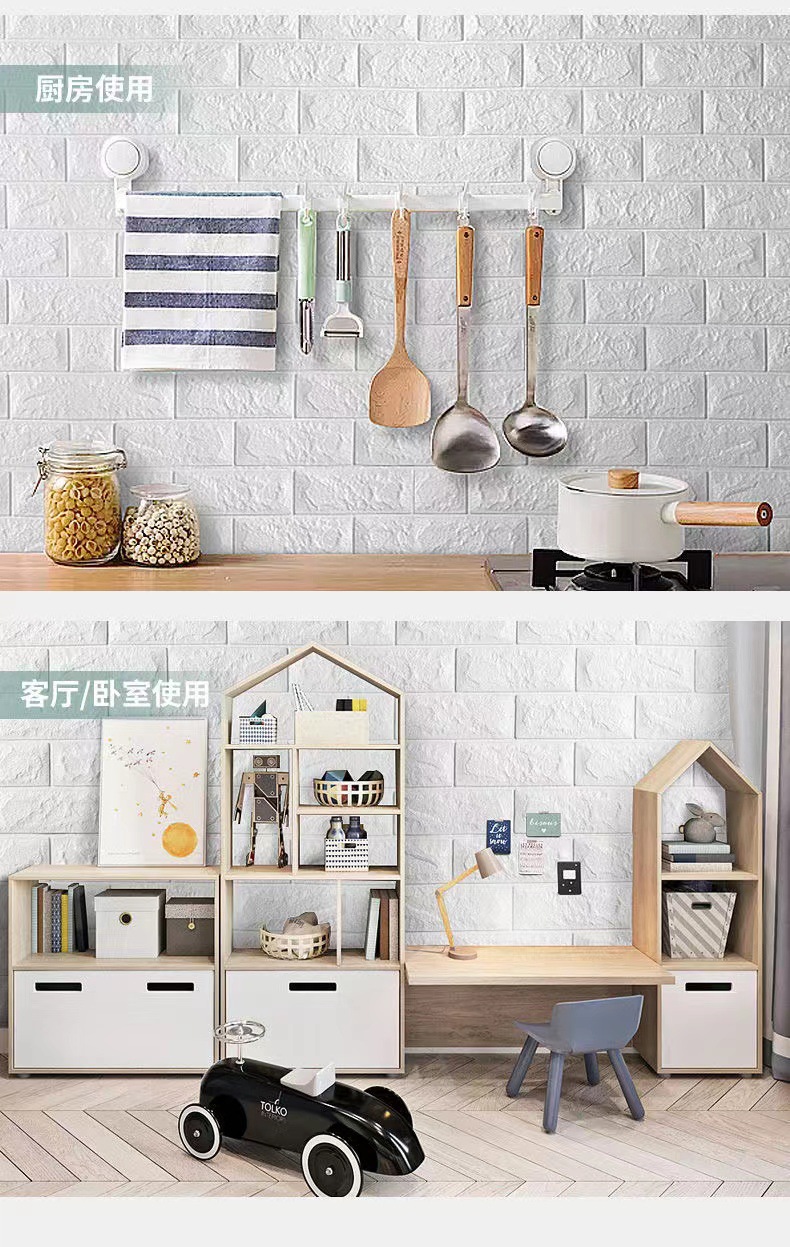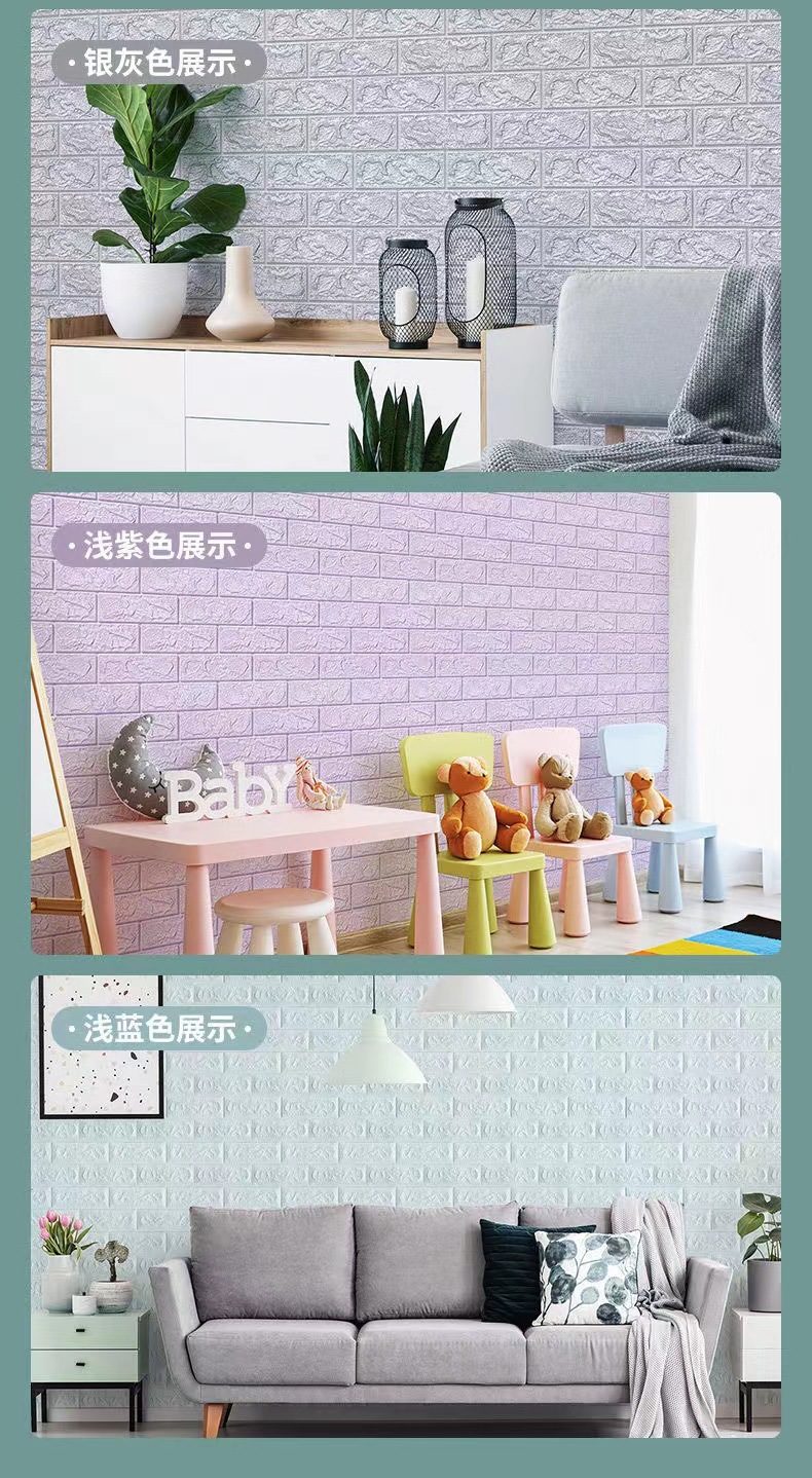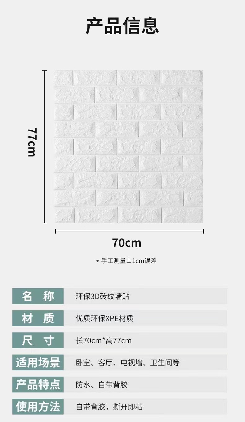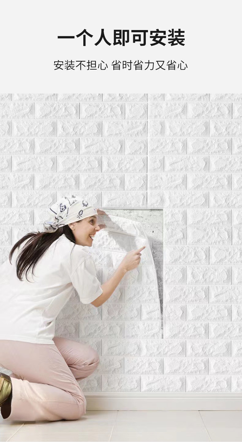 35*100cm跨境贴标3d立体墙贴泡沫背景墙裙出租屋砖纹壁纸自粘防水
