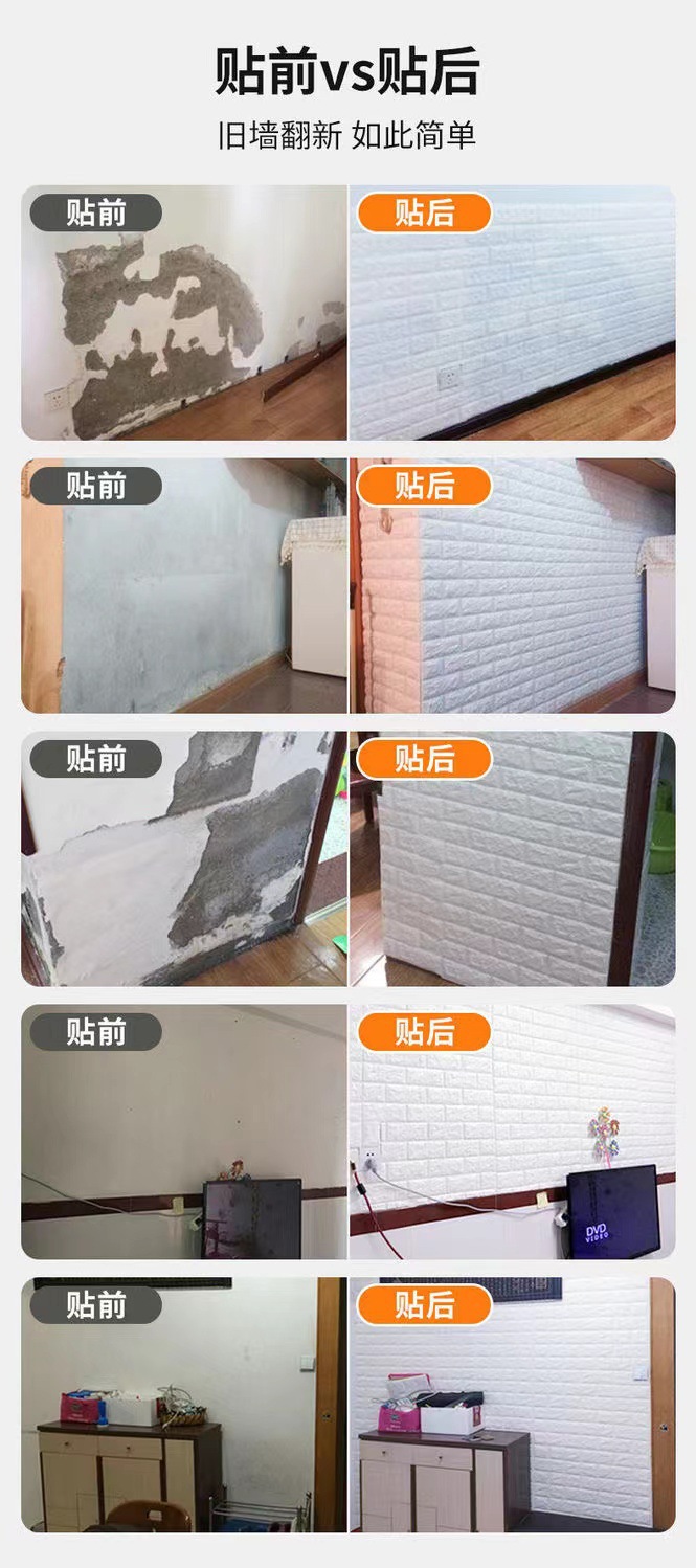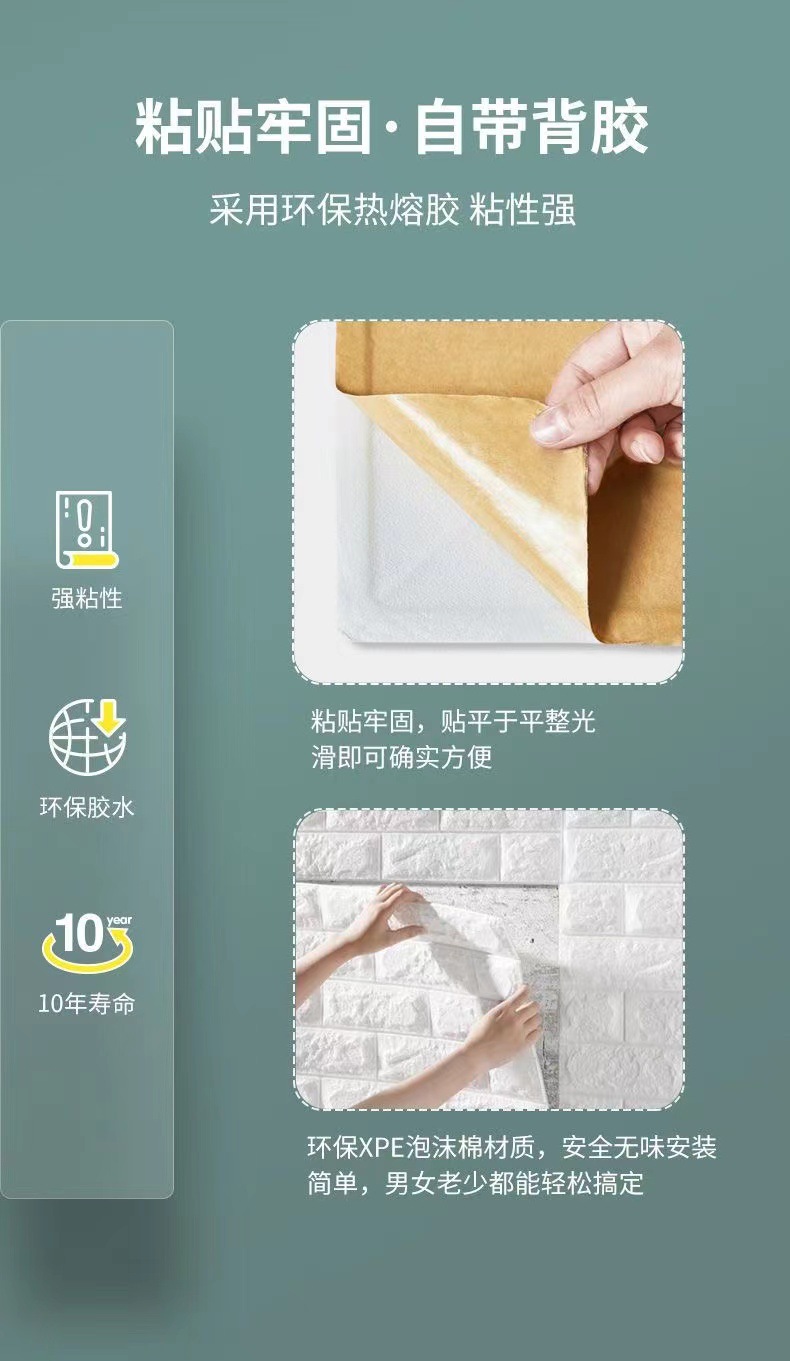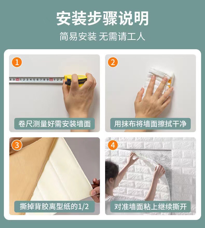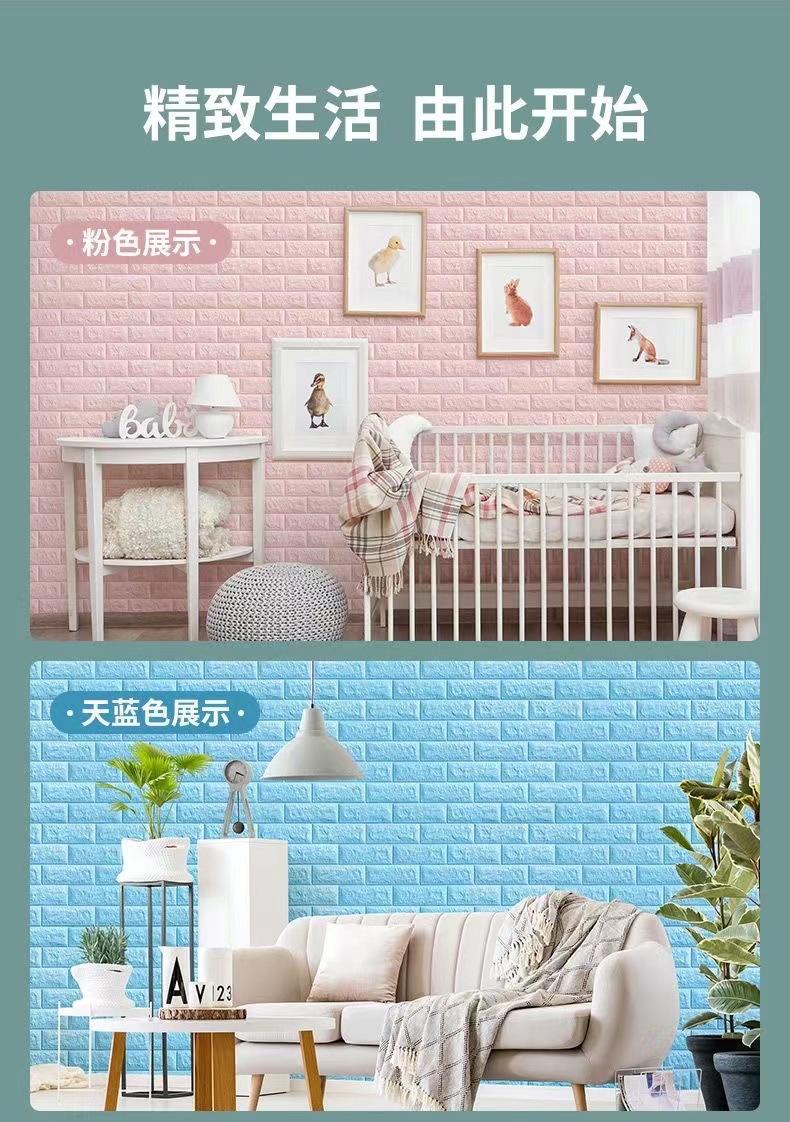 35*100cm跨境贴标3d立体墙贴泡沫背景墙裙出租屋砖纹壁纸自粘防水