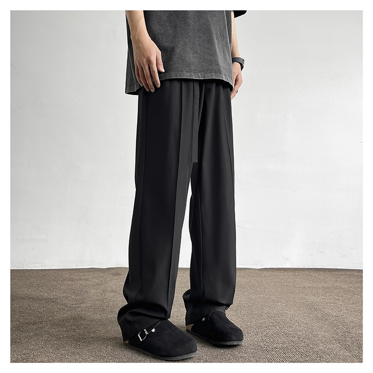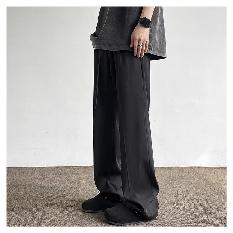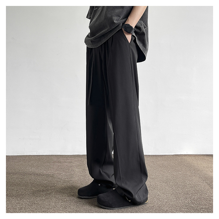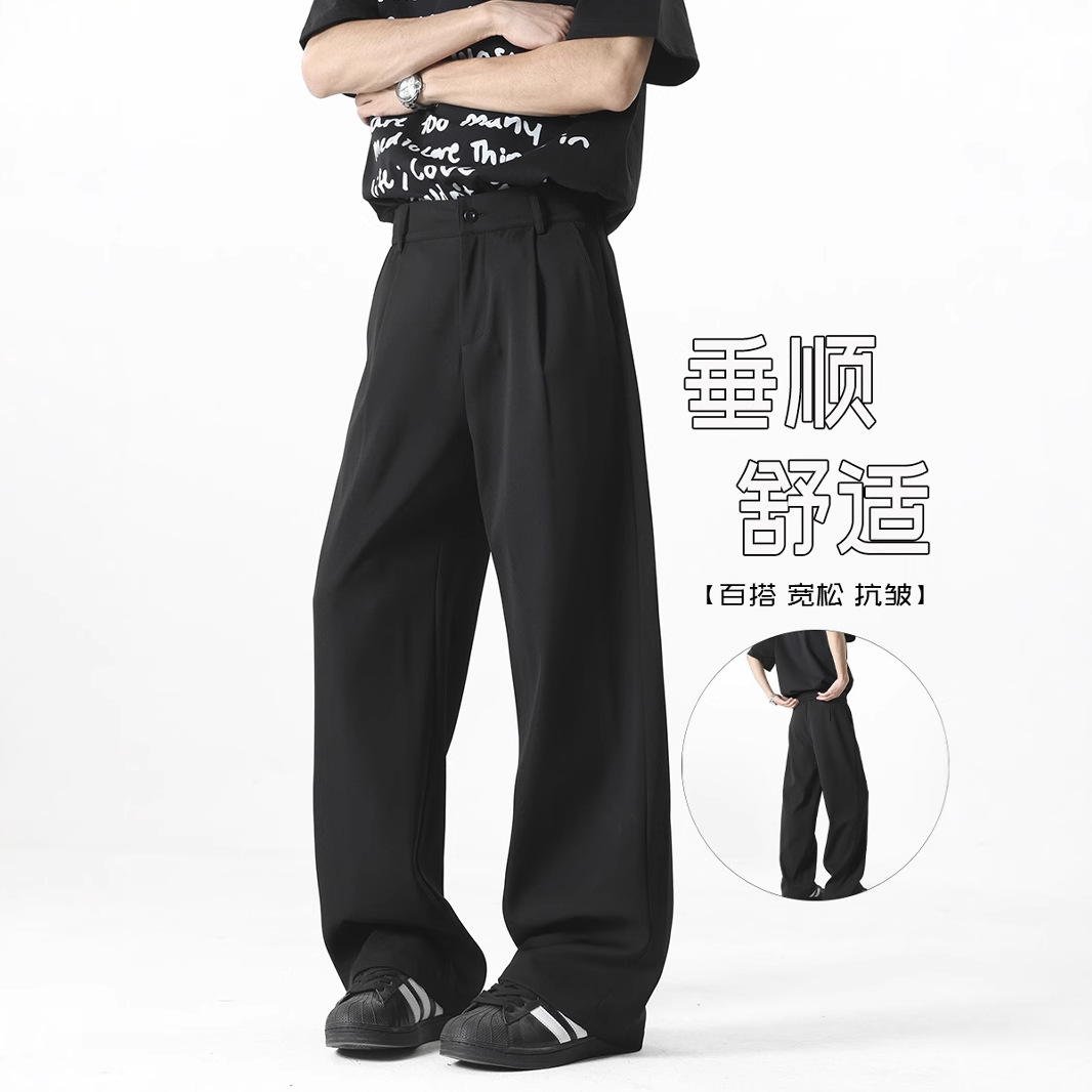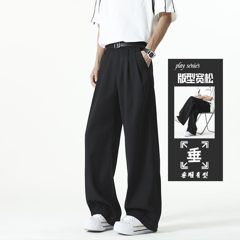 アメリカンクリーンフィットパンツ春夏メンズブラック万能ストレートパンツ高級ワイドレッグカジュアルロングパンツ