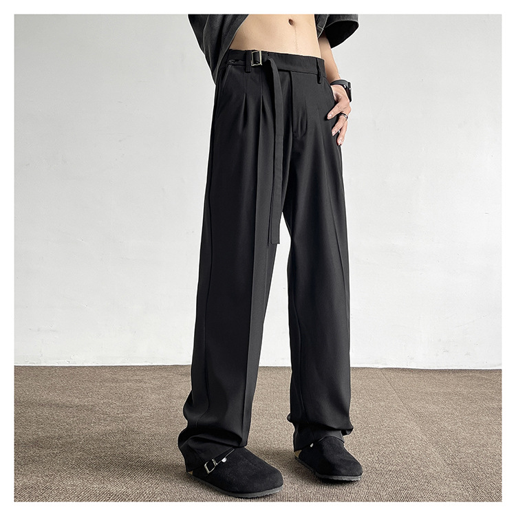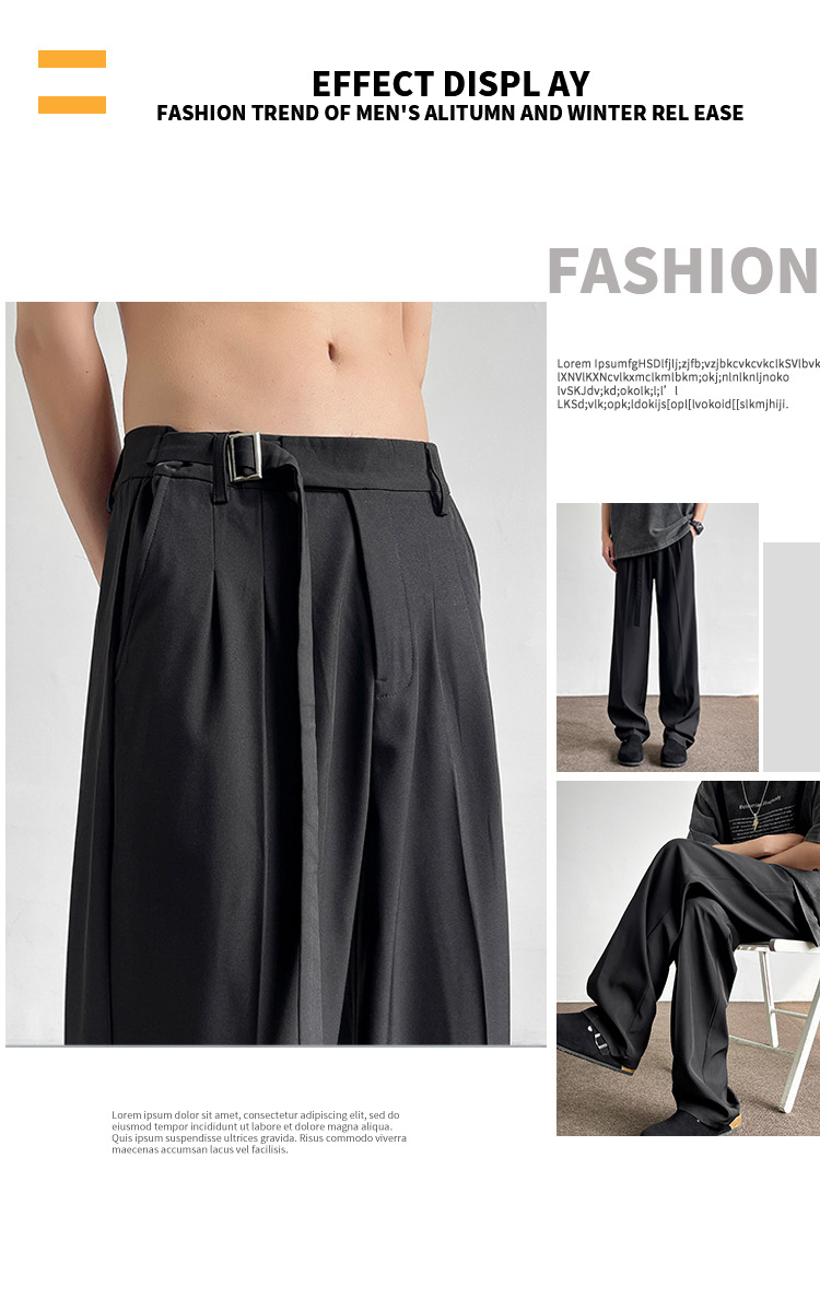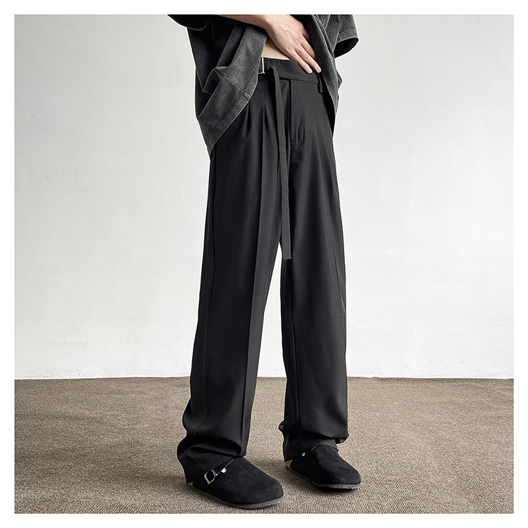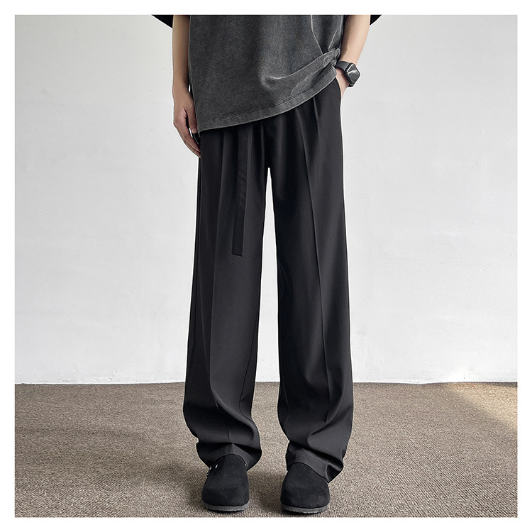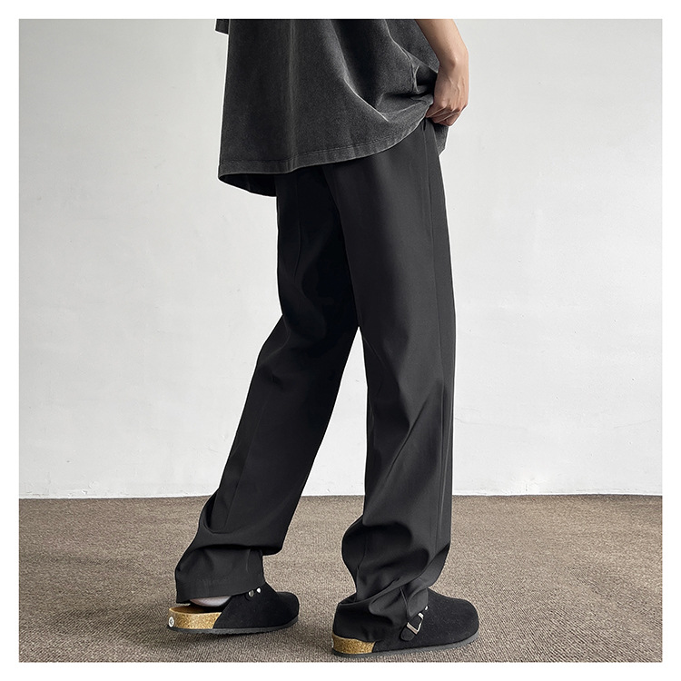 アメリカンクリーンフィットパンツ春夏メンズブラック万能ストレートパンツ高級ワイドレッグカジュアルロングパンツ