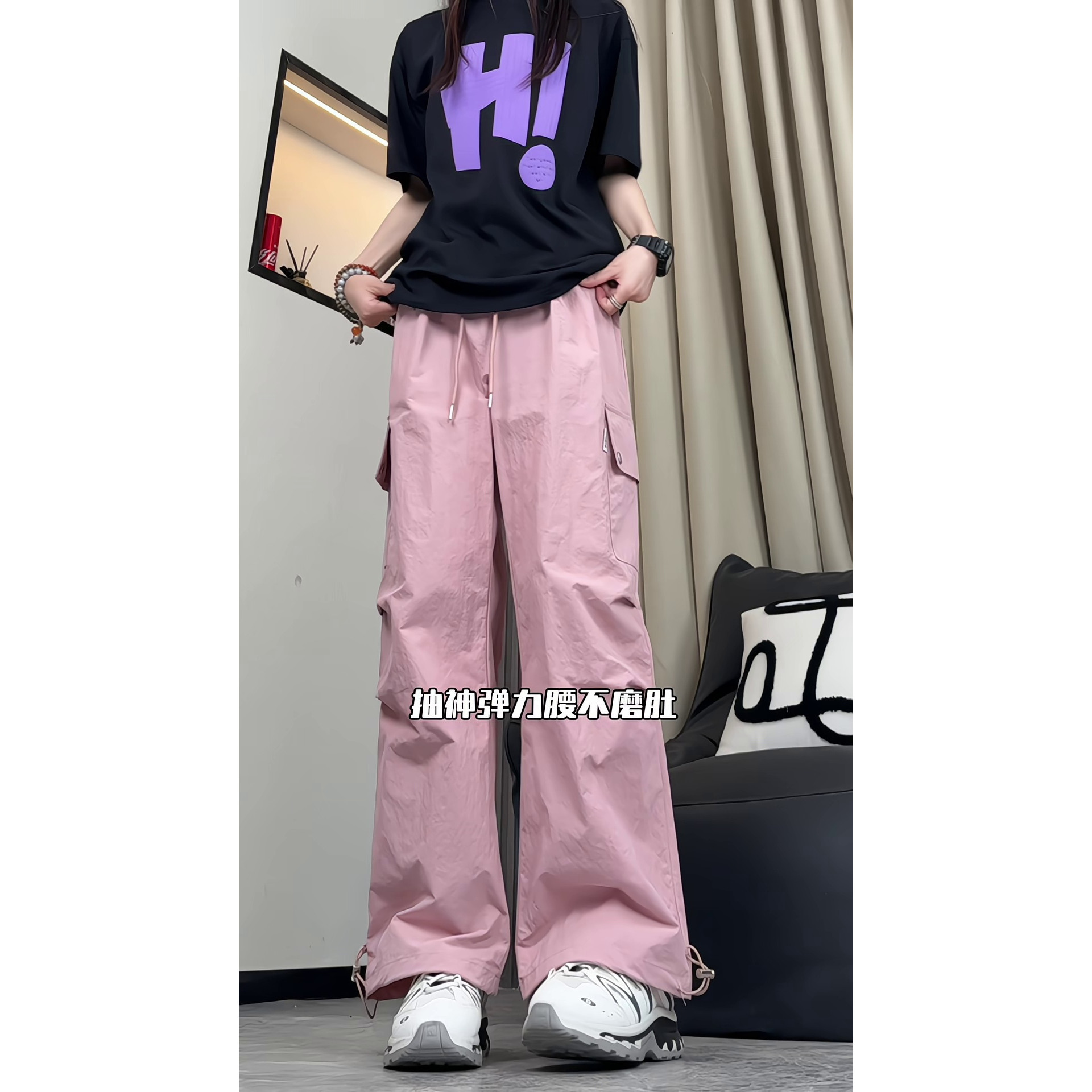 秋冬新款加绒工装裤抽绳宽松中高腰户外运动休闲百搭直筒长裤女