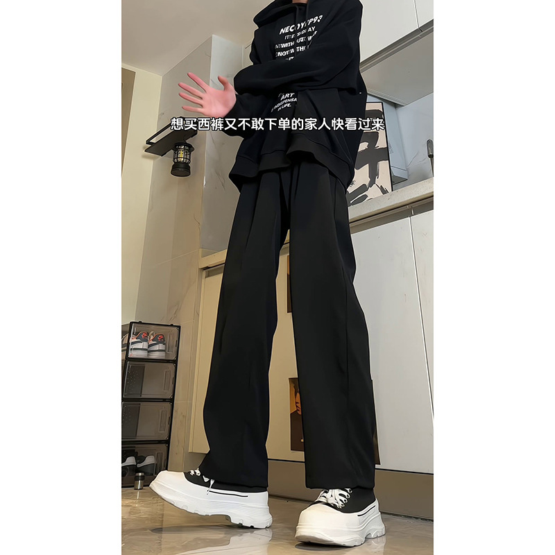 D-A232-HK9363-特P29黑色西装长裤宽松直筒西裤春夏垂感微喇裤