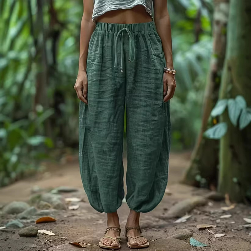女士潮流复古休闲棉麻裤透气宽松直筒裤纯色夏季日常百搭轻薄长裤
