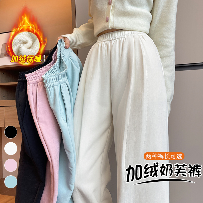 秋冬新款高腰阔腿裤女加绒加厚保暖休闲裤显瘦长裤气质通勤