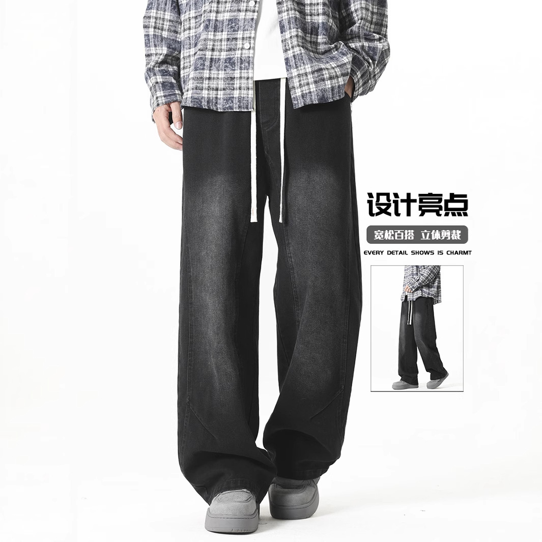 アメリカンハイストリートヒップホップワイドレッグスモールソードジーンズメンズルーズトレンディブランド大きいサイズカジュアル春デザインロングパンツ