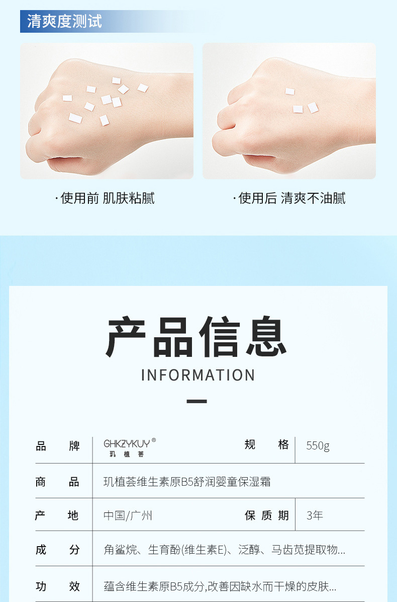 产品规格 维生素原b5婴儿保湿霜550g