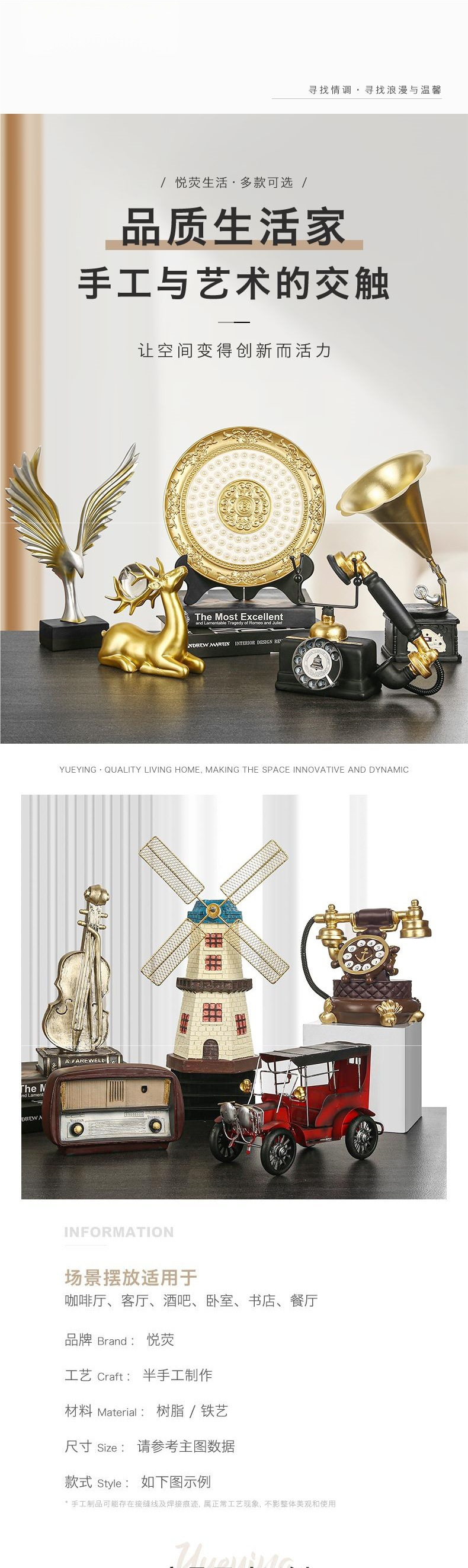 酒柜装柜品摆件现代复古家居客厅电视柜创意工艺品办公室店铺摆设