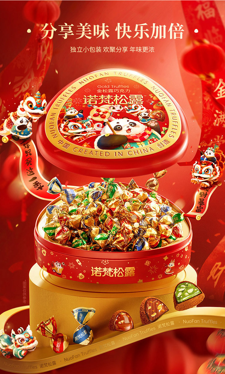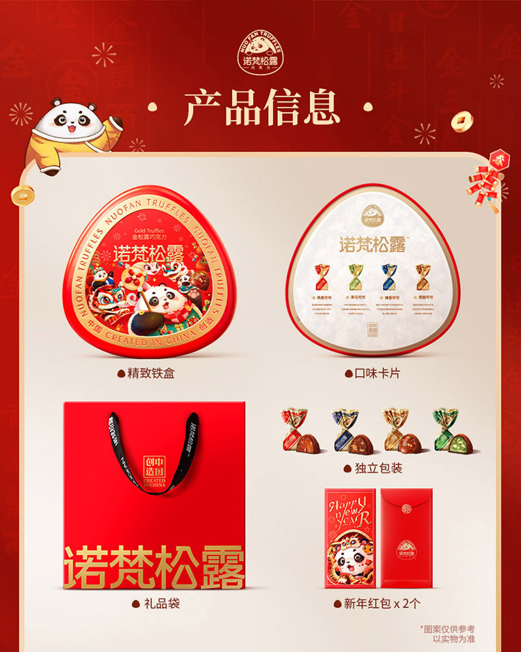 诺梵松露熊猫款金松露巧克力礼盒装年节送礼248g