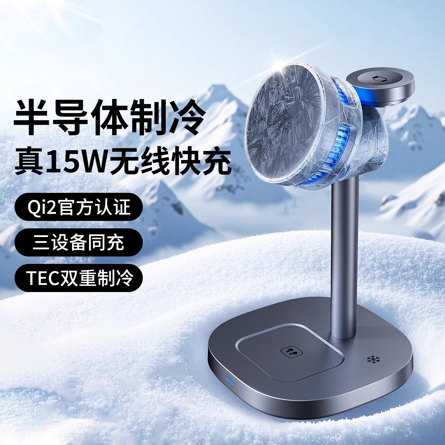 Qi2认证三合一磁吸无线充半导体制冷25W适用于苹果三星手表充电器
