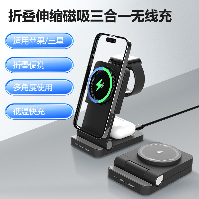 クロスボーダー多機能スリーインワン携帯電話イヤホン腕時計マグネットワイヤレス充電器スタンド折りたたみマグネットワイヤレス充電器