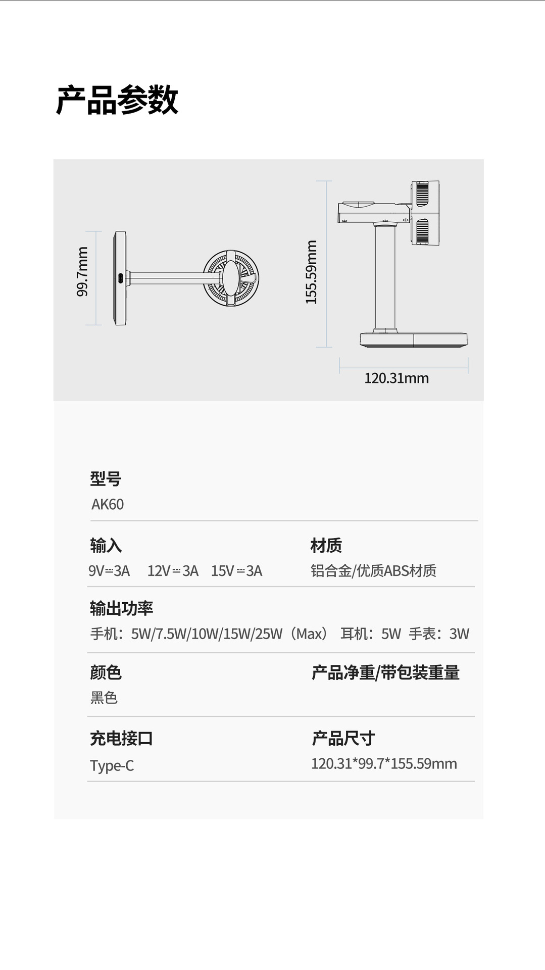 qi2.2认证无线快充 25W多功能三合一无线充电器桌面风冷手机支架
