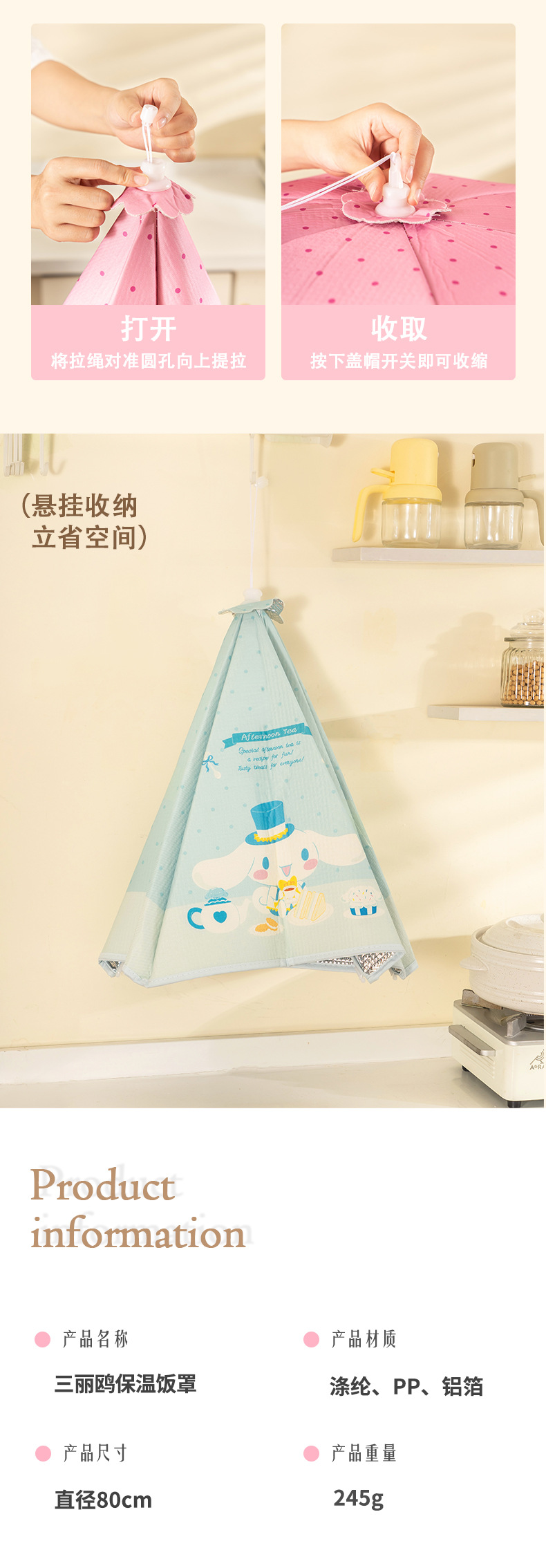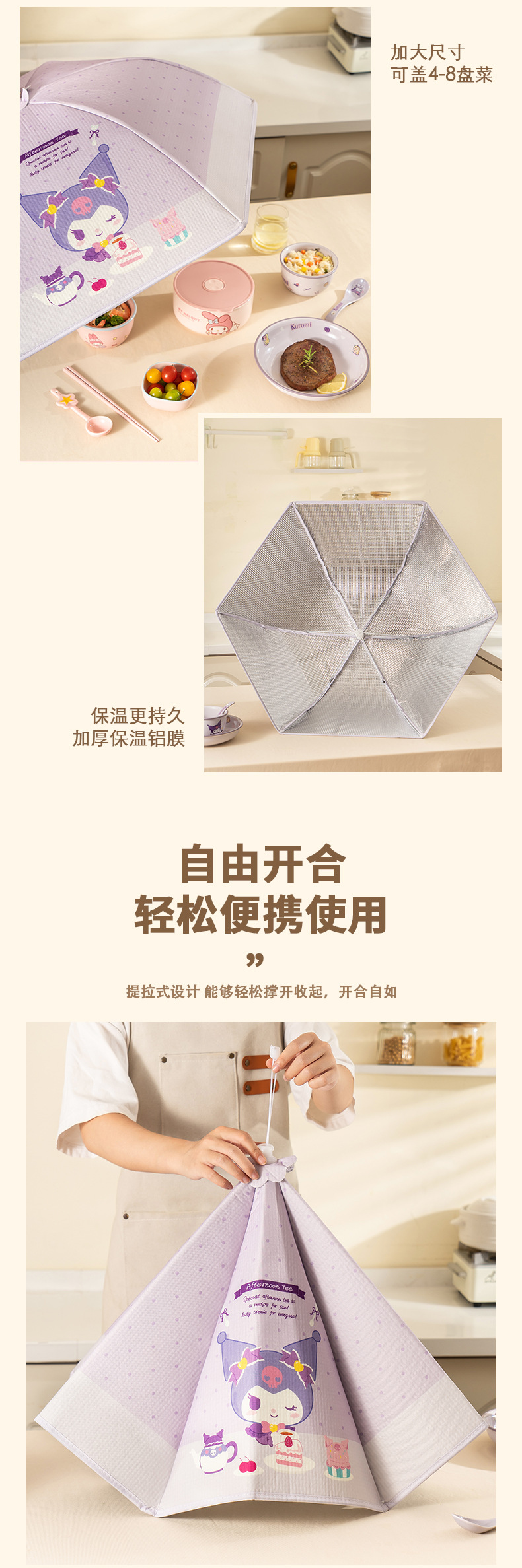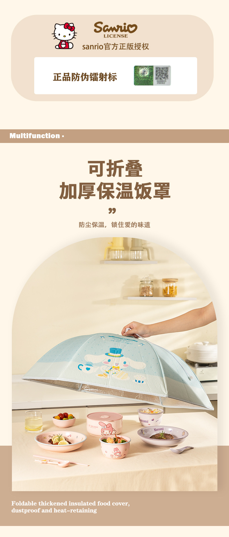 伴糖&三丽鸥正版保温菜罩家用厨房餐桌折叠防尘罩子冬季保温饭罩