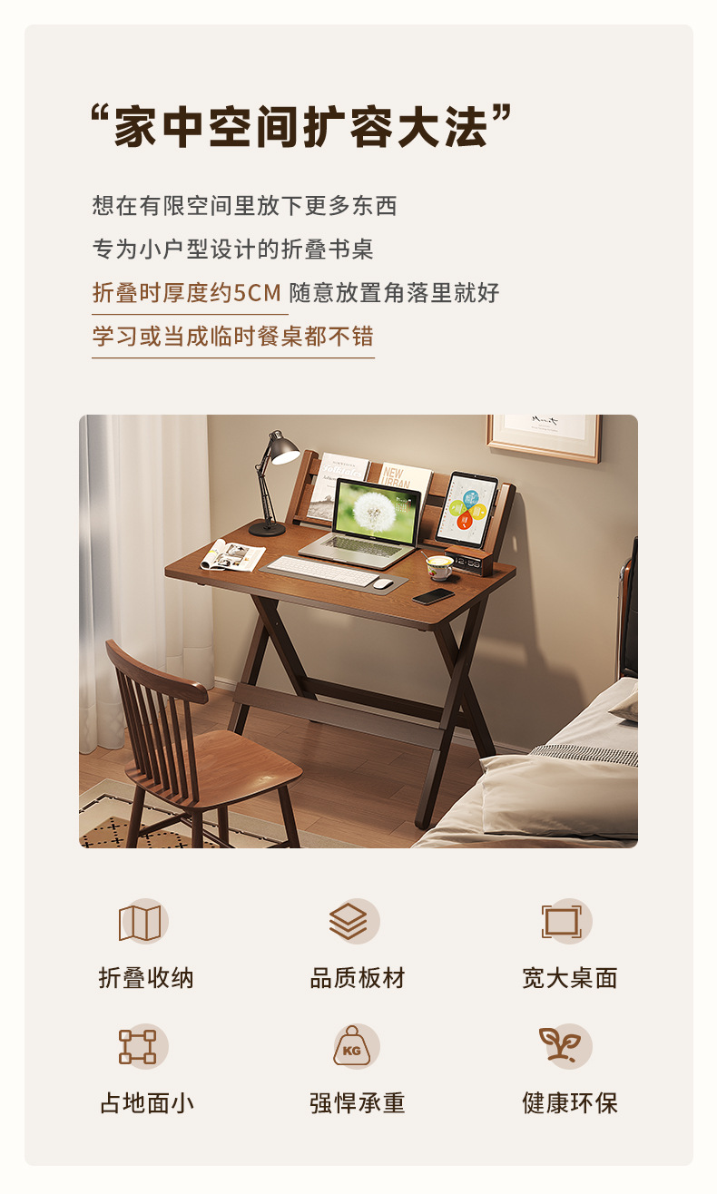 便捷儿童学习桌家用折叠简易书桌小户型卧室办公写字桌床边小桌子