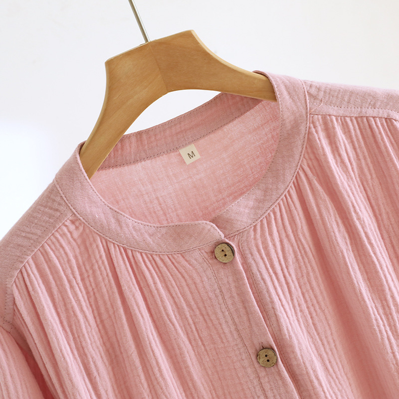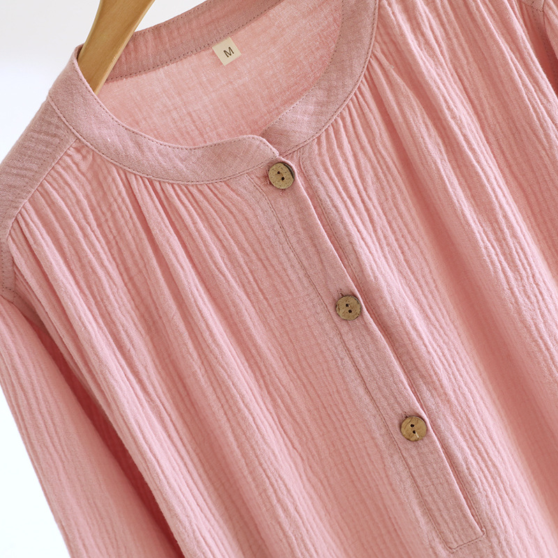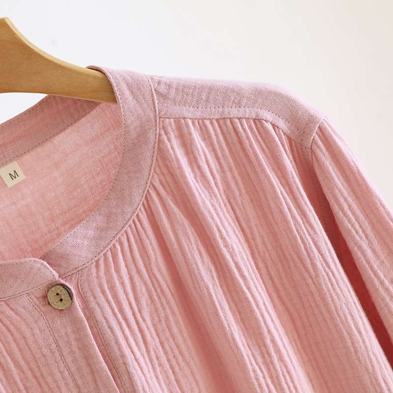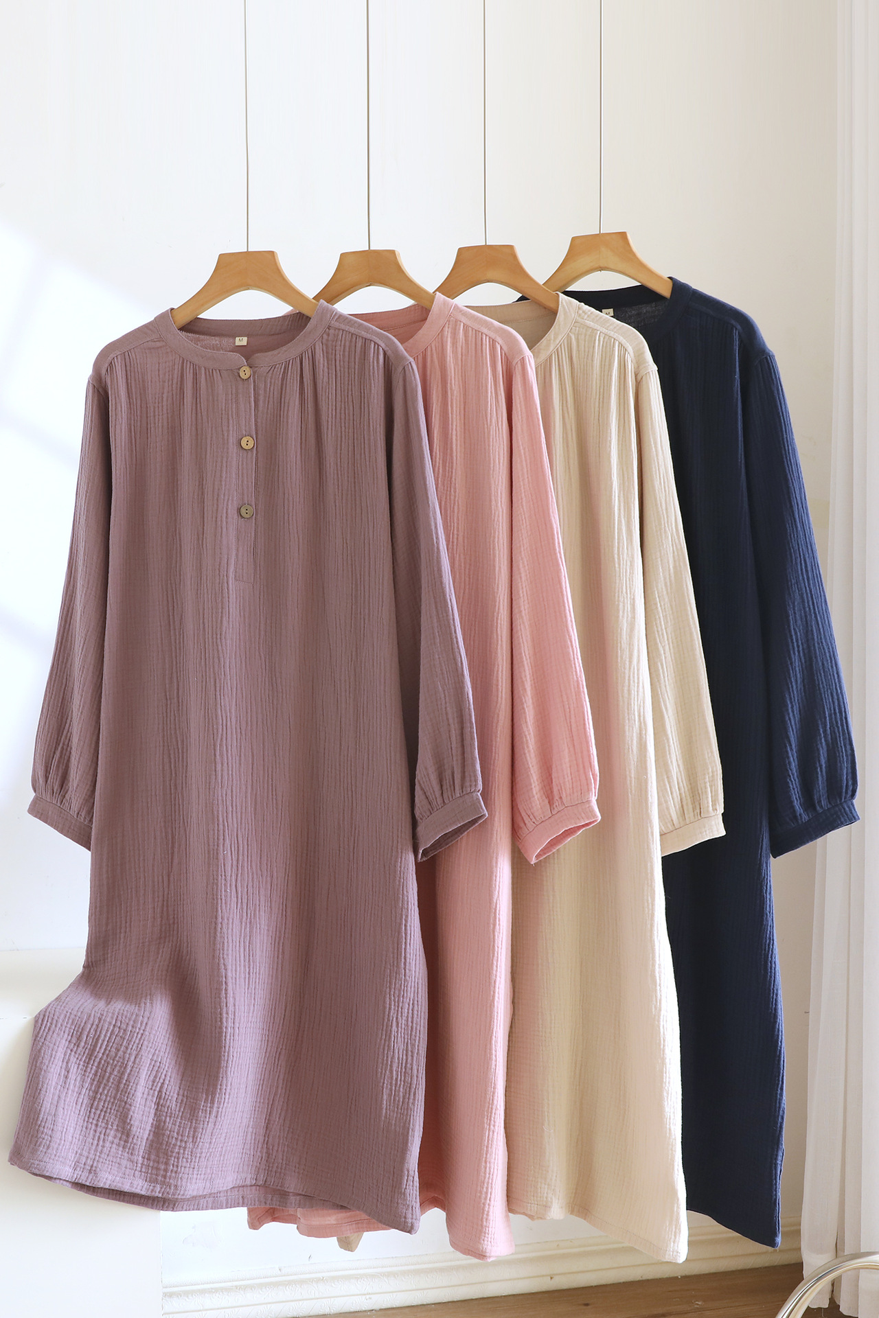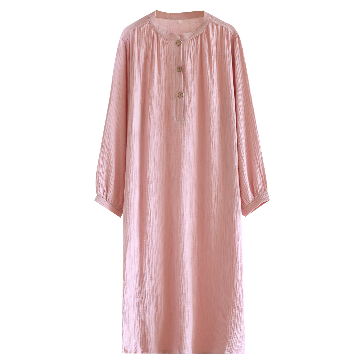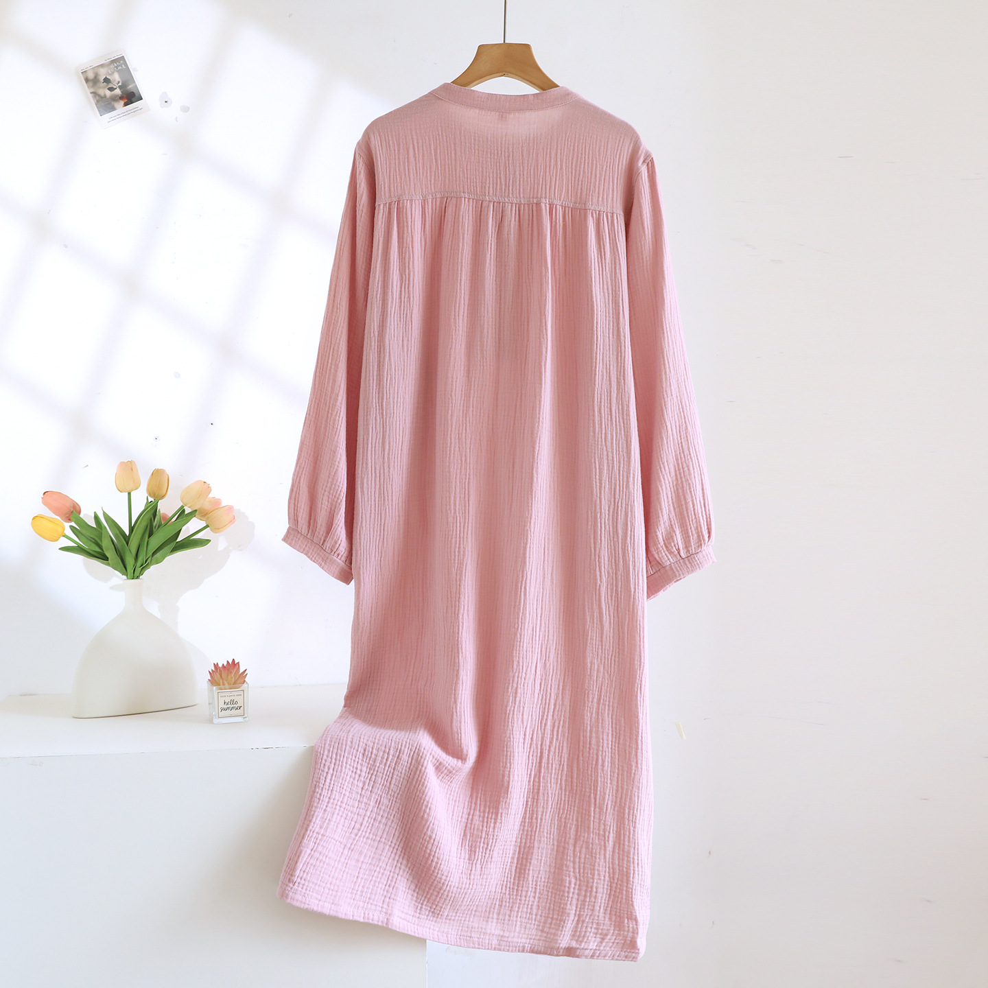 ちりめん純綿パジャマ春夏秋ミディアムロング長袖二重ガーゼコットンレディースワンピースホームウェアパジャマ