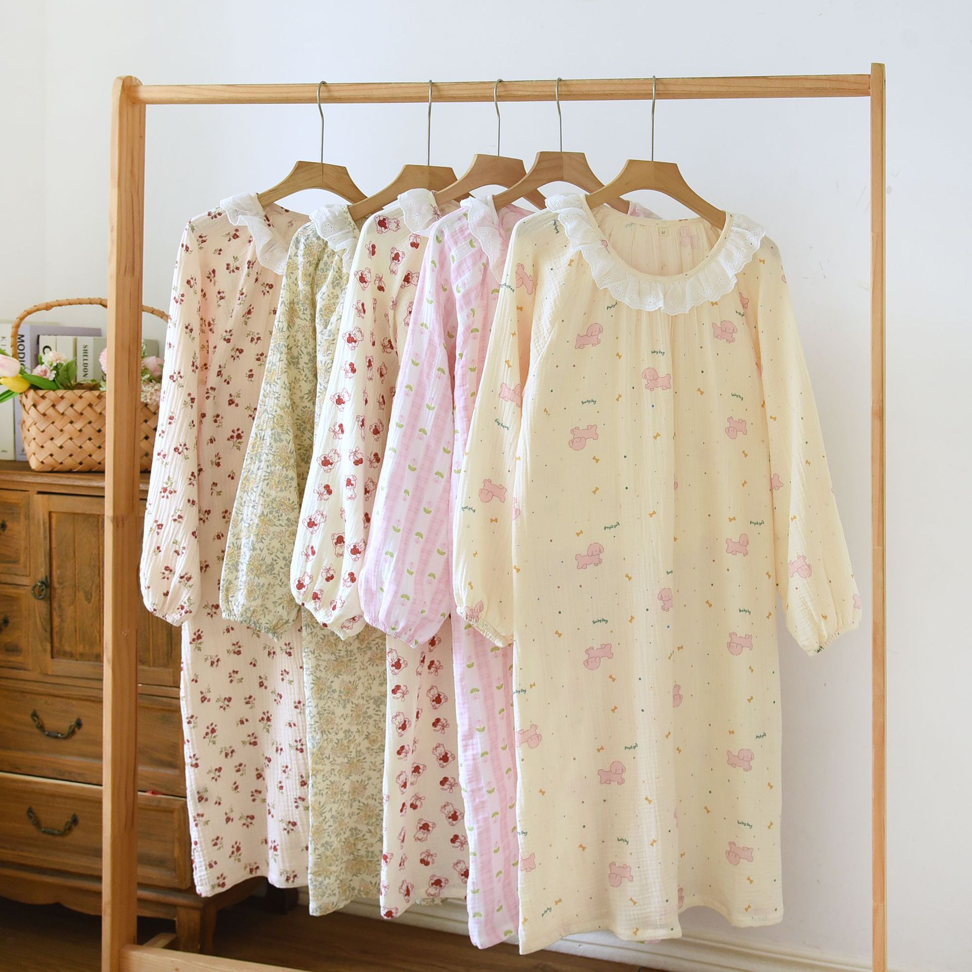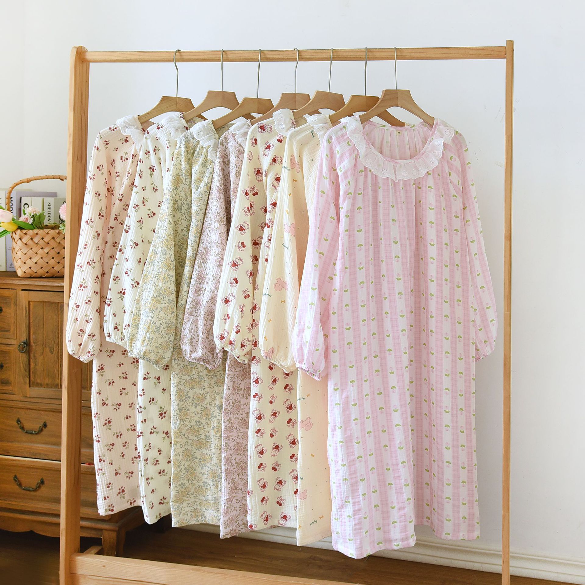 日系纯棉纱布睡裙睡衣女士春秋全棉长袖宽松可外穿薄款家居连衣裙