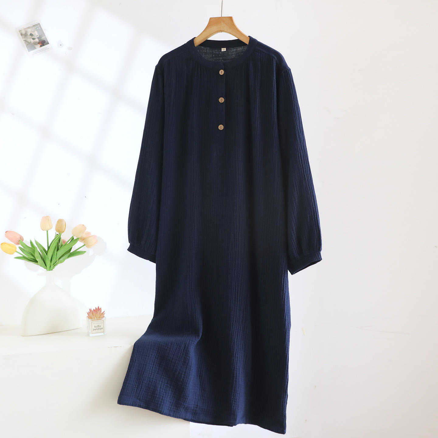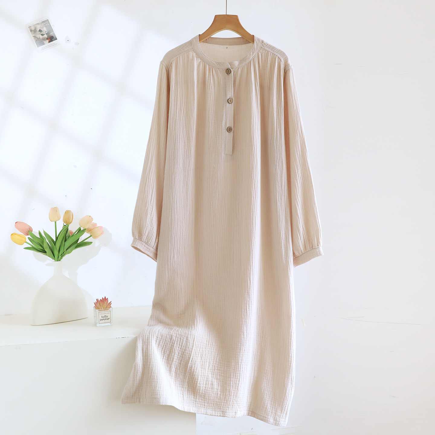 日本系春秋綿ガーゼ寝スカート女性夏の薄い綿長袖の中の長さは家庭服を着ることができる