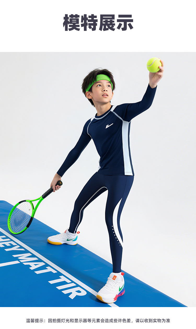 回力儿童紧身衣篮球训练服速干衣男童足球跑步打底健身服运动套装