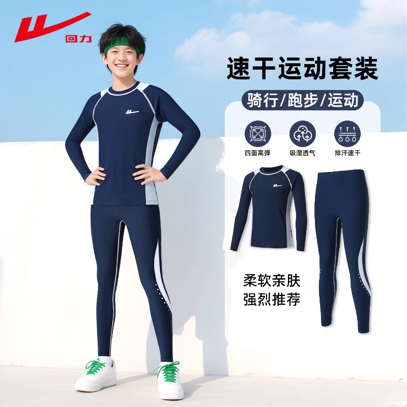 回力儿童打底紧身衣训练服男童篮球服速干衣体能秋冬足球运动套装