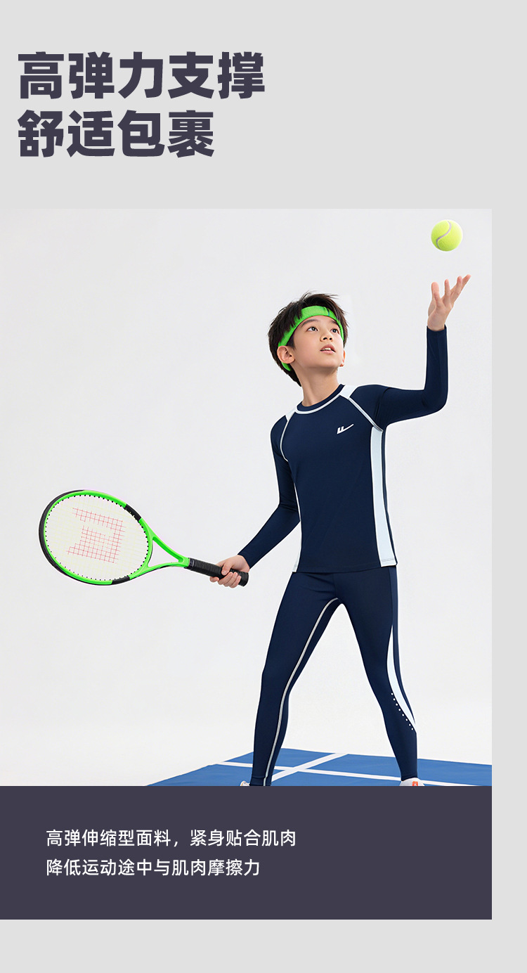 回力儿童篮球服秋冬运动套装跑步速干紧身衣打底长袖长裤男童训练