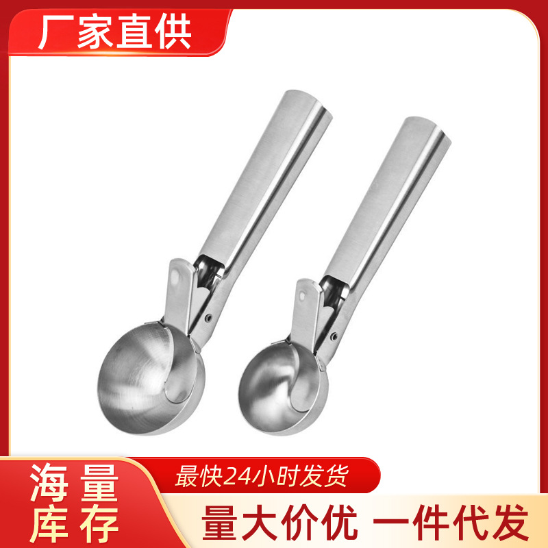 ステンレスアイスクリームスプーン弾式アイスクリームスプーン果物掘削器アイスクリームスプーン家庭用スイカ掘削スプーン