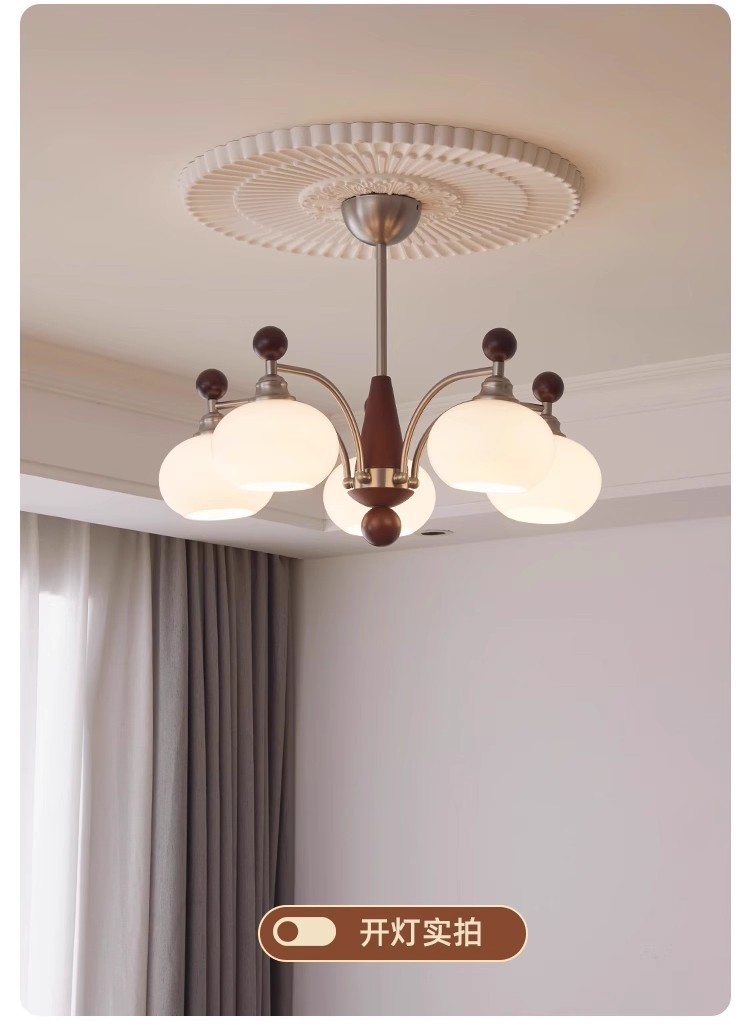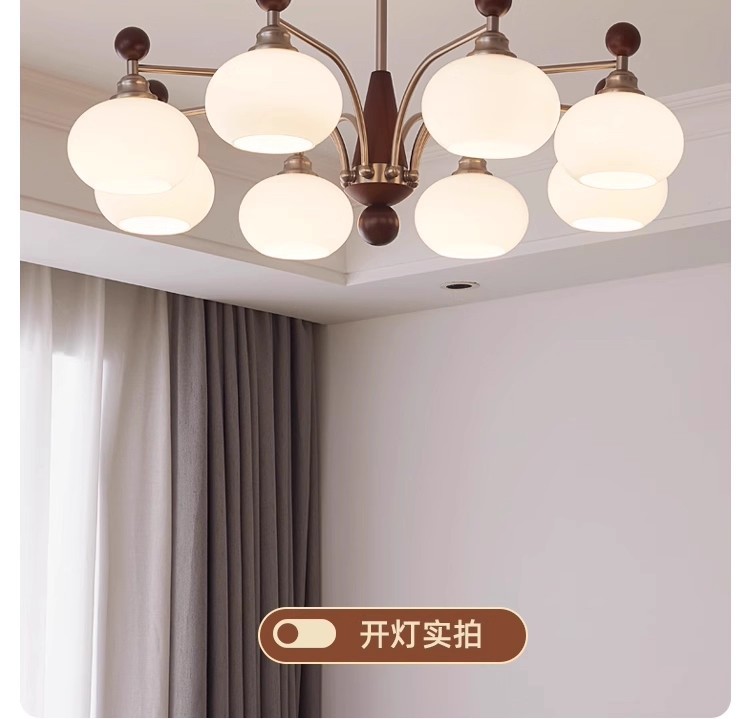 客厅吊灯法式中古风胡桃木色大气卧室灯美式复古vintage大厅灯具